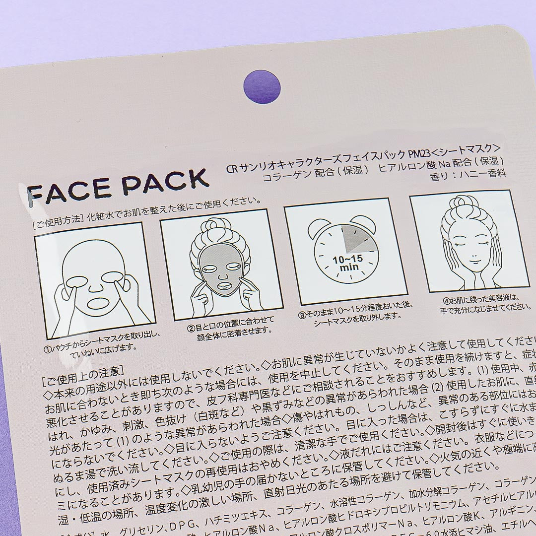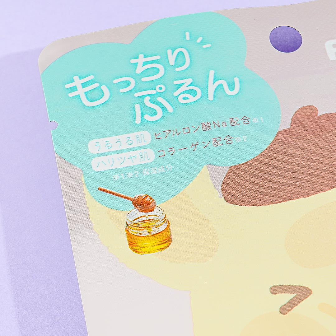 Make this face pack part of your beauty regimen! It's illustrated with Pompompurin making cheekies with his friend Muffin. This face pack contains moisturizing sodium and firming collagen!