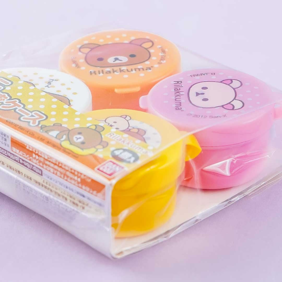 A set of round mini food containers featuring RIlakkuma, Kiiroitori, and Korilakkuma