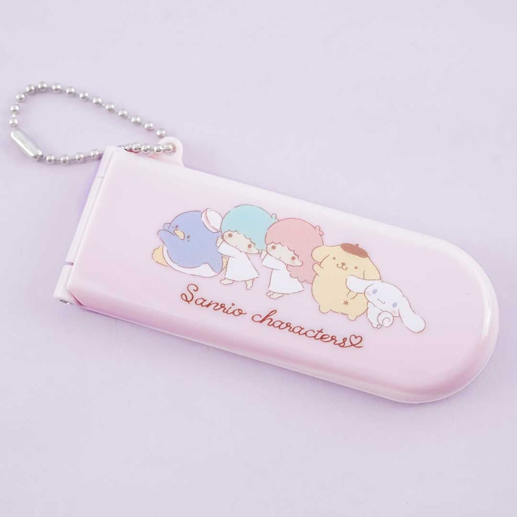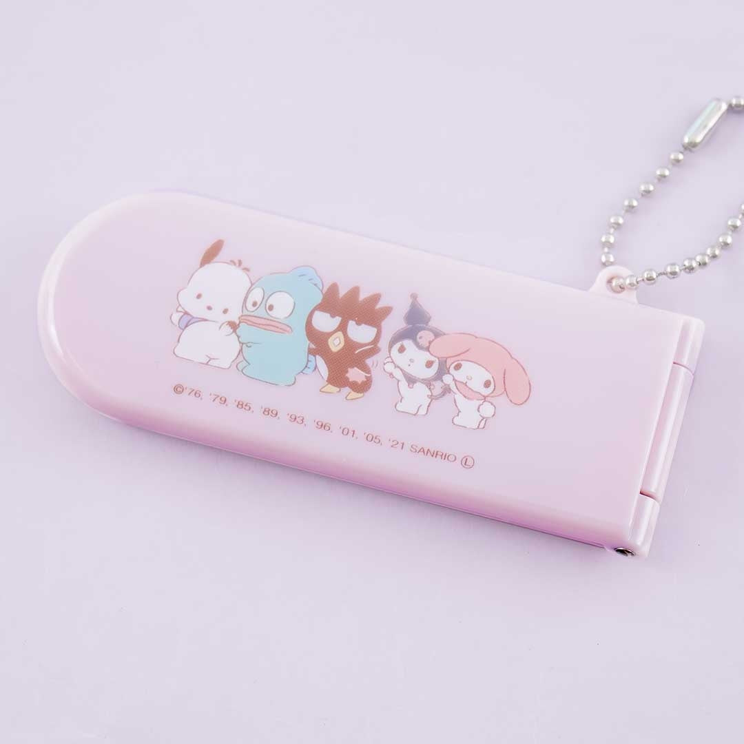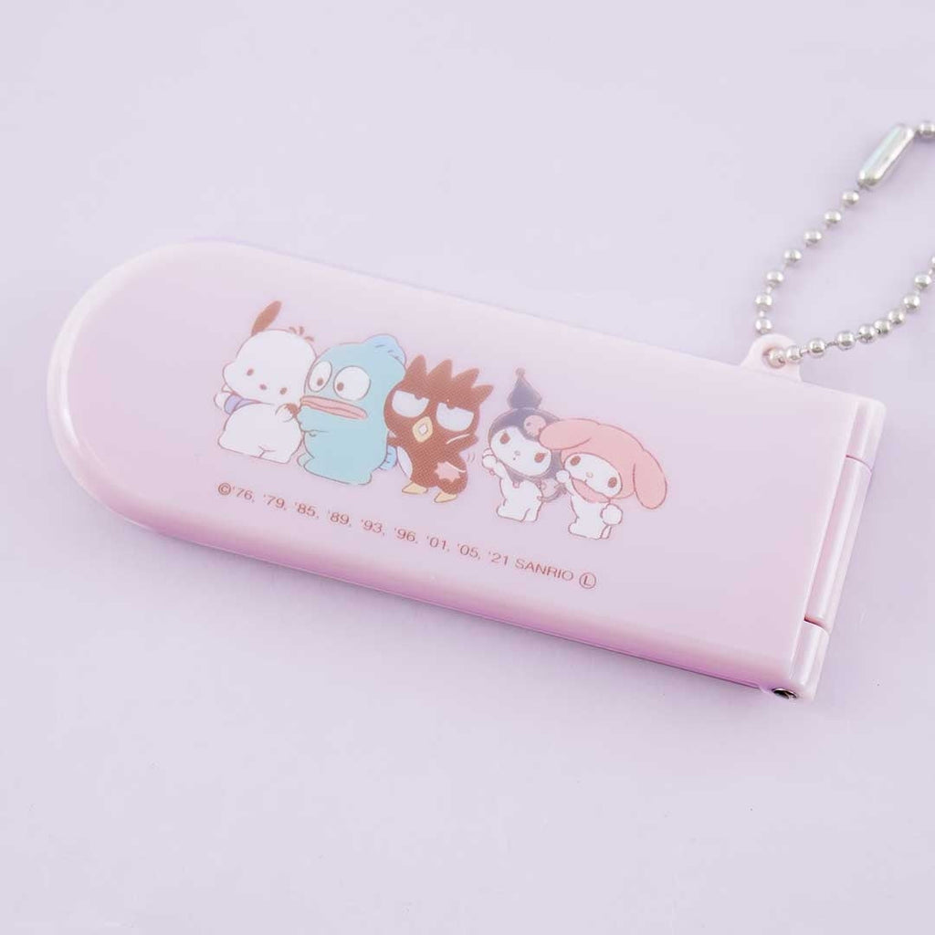 Keep your clothes nice and clean using this kawaii lint brush illustrated with Sanrio characters giving each other back rubs. It features a mirror on the back of the lid so you can inspect your clothes after! This brush also comes with a detachable ball chain.