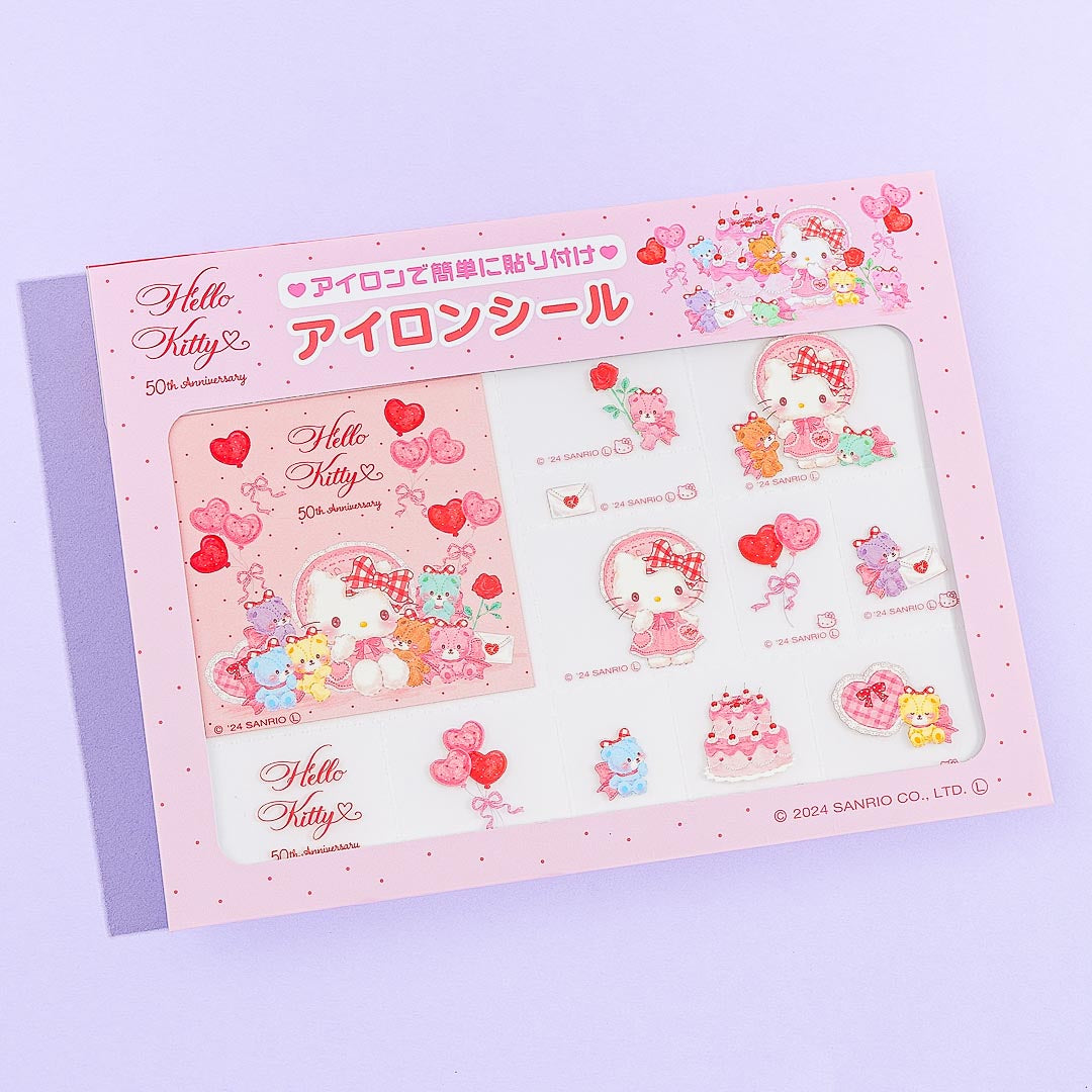 Decorate your denim bag, jacket, or pouch with this super cute set of iron-on stickers. It features prints of Hello Kitty and friends having a party! These stickers were made in celebration of Hello Kitty's 50th anniversary!