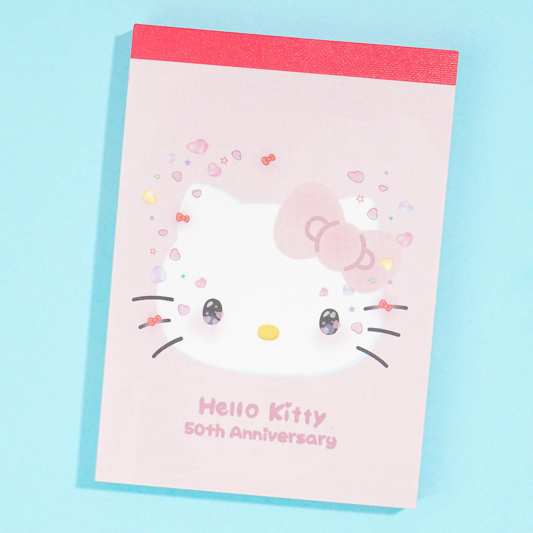 Write down important reminders on the colored sheets of this kawaii memo pad! It was made to celebrate Hello Kitty's 50th anniversary. This cute memo pad is decorated with prints of Hello Kitty's kawaii face.