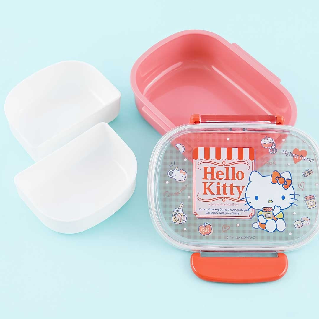 Create the cutest kyarabens inside this fancy bento box made of durable plastic! It features prints of Hello Kitty and her fave picnic treats like apples, cinnamon sticks, honey, and more on the clear lid with dual snap-locks. The kawaii set comes with a single full compartment and two half compartments. These are all dishwasher compatible. You can also heat food in the microwave using this lunch box, minus the lid.