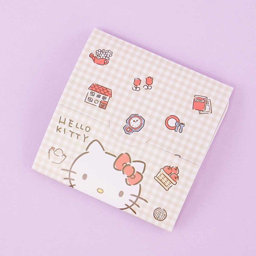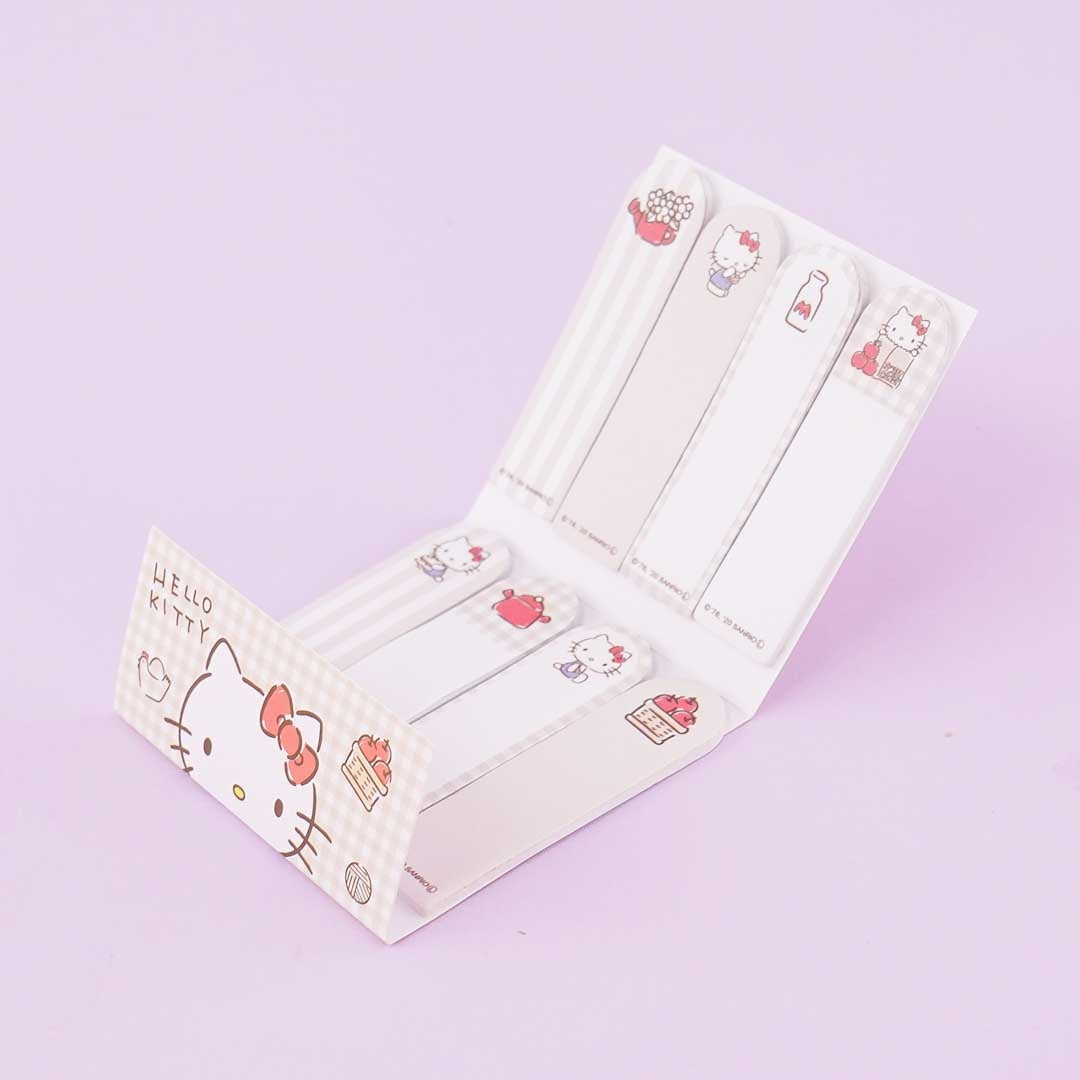 This super cute set of sticky notes includes eight pieces with eight different prints that feature Hello Kitty and her favorite things at home like flowers, apples, books, and more! Use these sticky tabs to mark your planner.