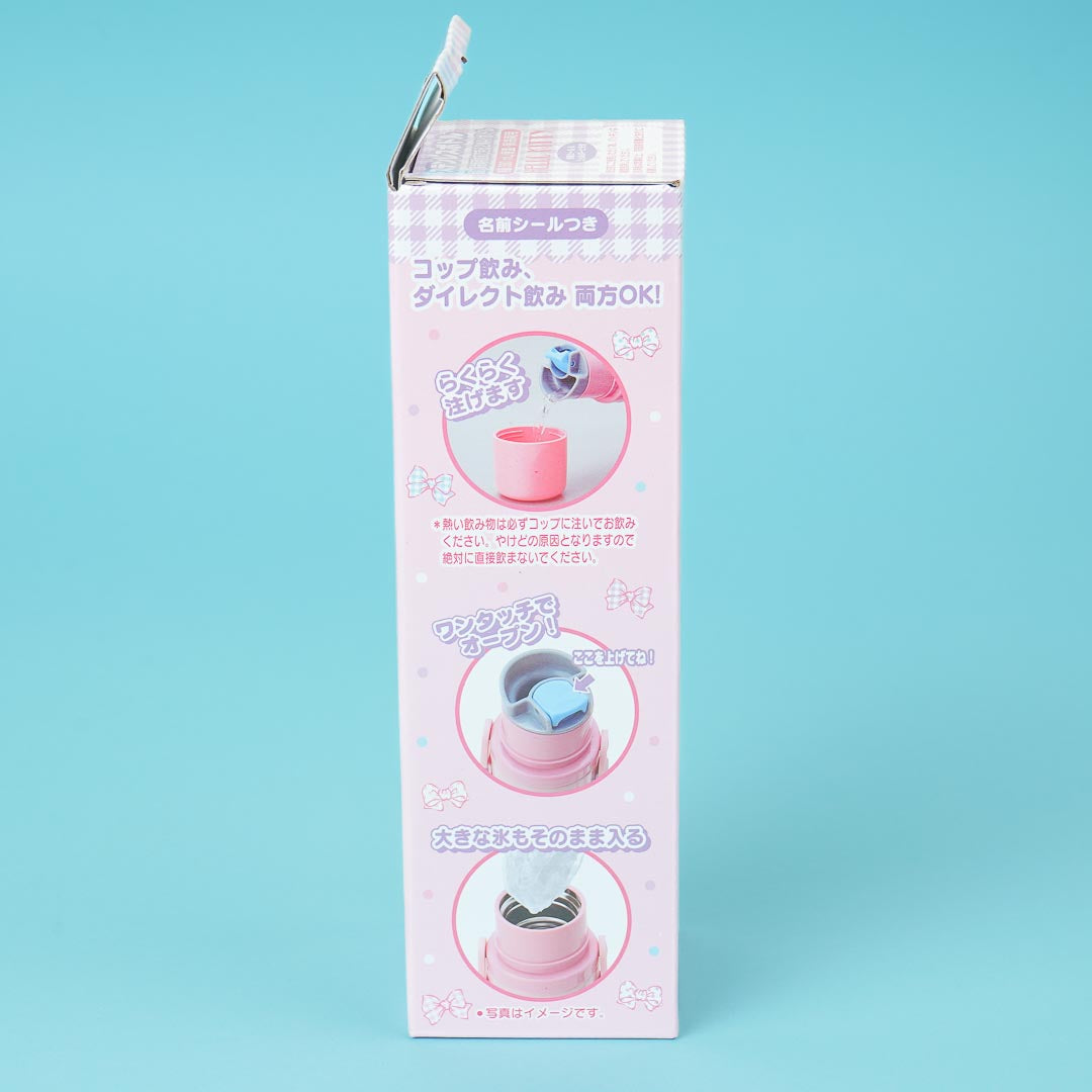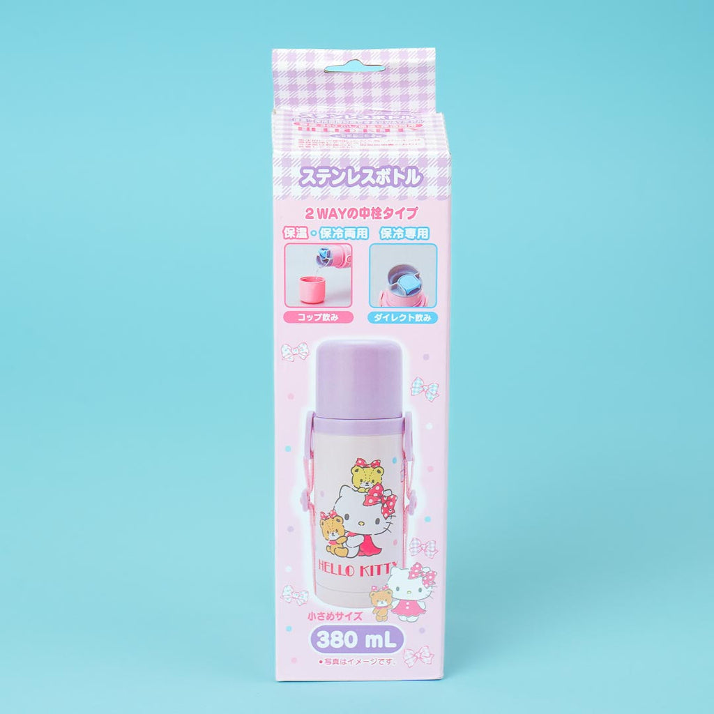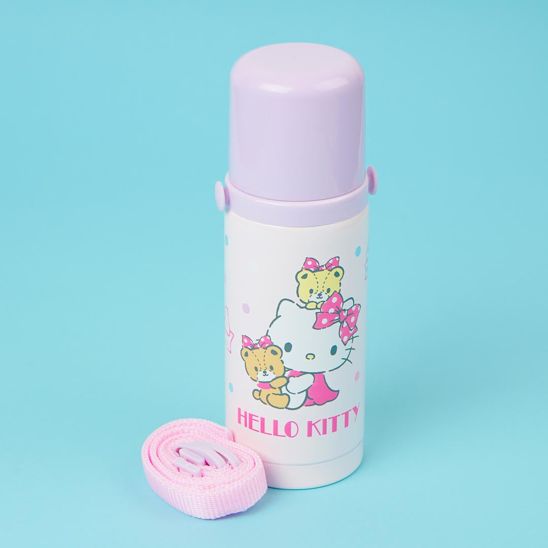 This super cute stainless steel bottle will help you stay hydrated! It has a compact size and adjustable strap so it's easy to bring. The bottle also comes with a lid that doubles as a cup. Plus, it has kawaii illustrations of Hello Kitty with bears and bows.