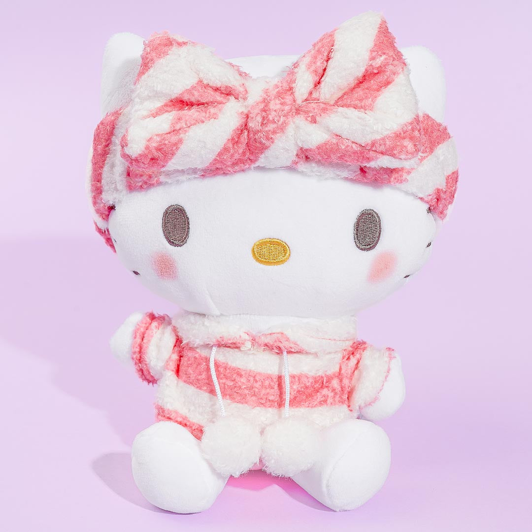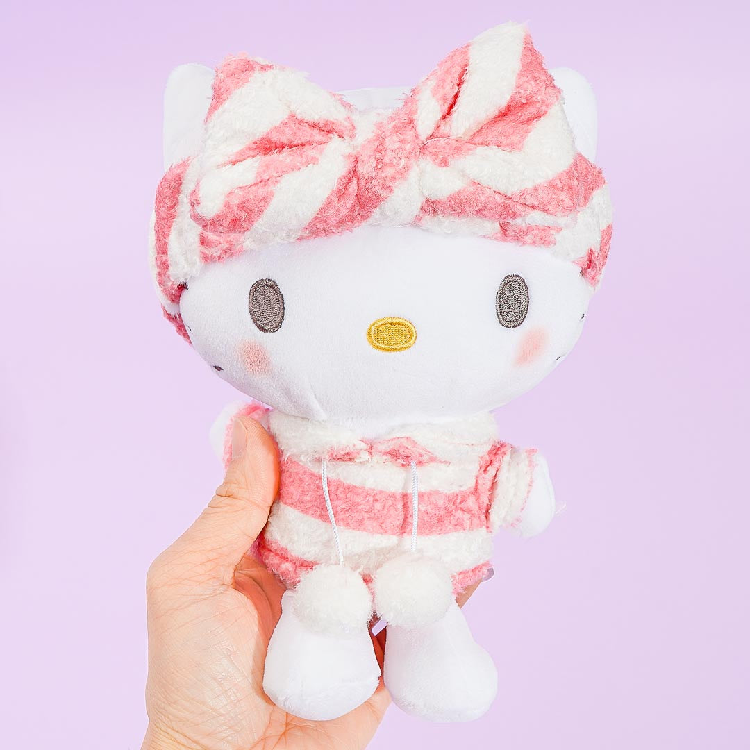 This super kawaii Hello Kitty plushie is wearing a candy cane-inspired outfit. It's the perfect addition to your stuffed toy collection! Have fun playing dress up with this medium-sized cutie.