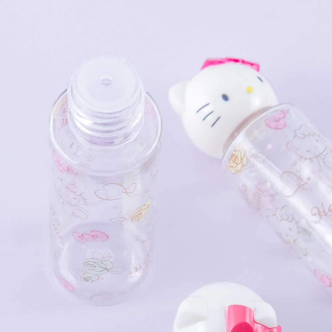 Pour your liquid makeup into these super kawaii cosmetic bottles featuring prints of Hello Kitty and flowers! They feature lids shaped like Hello Kitty's head