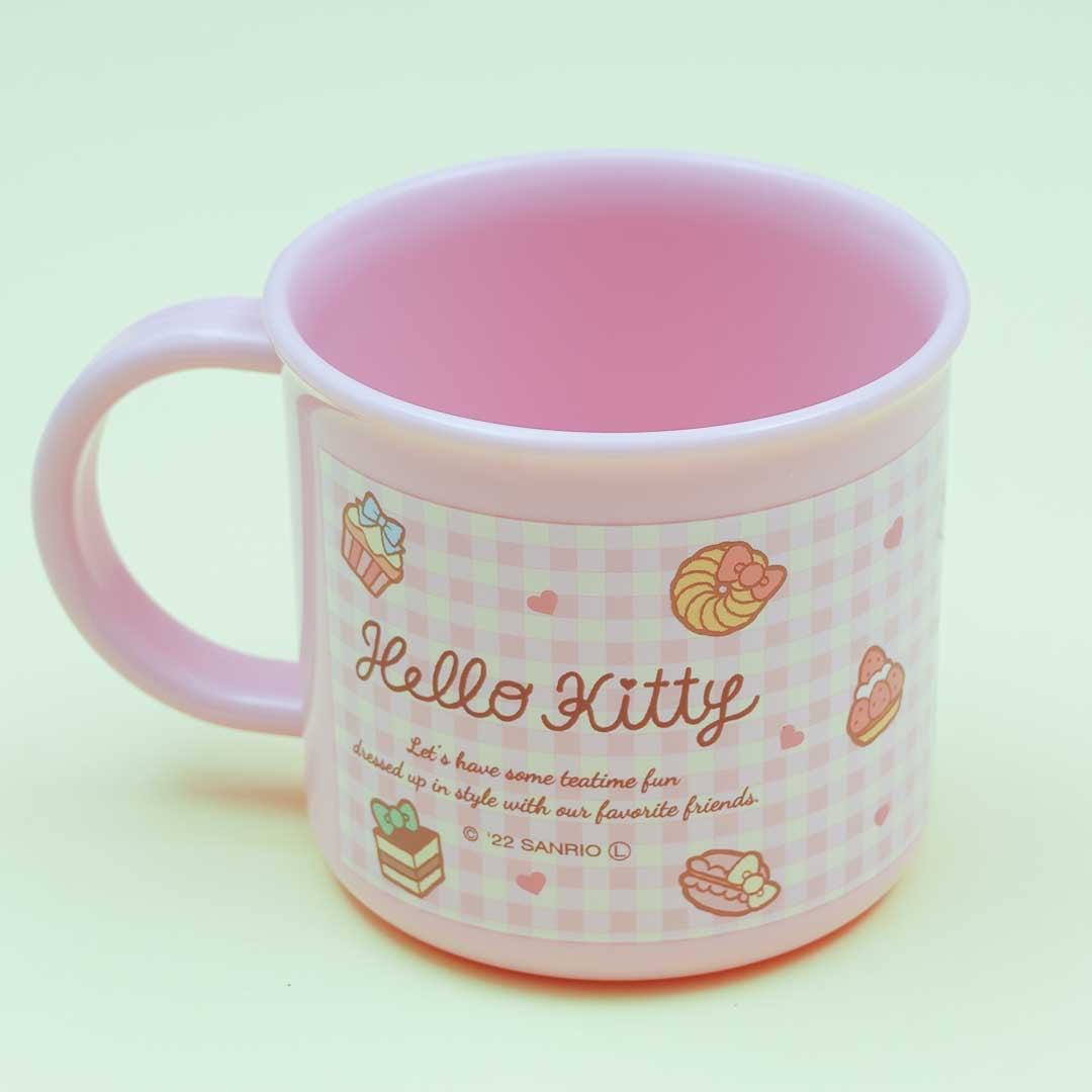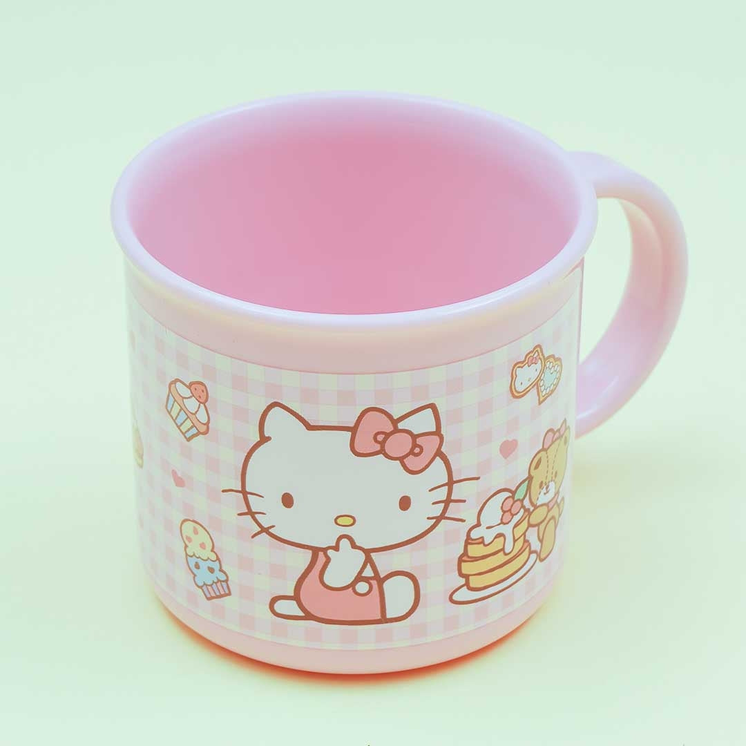 This super kawaii cup is decorated with prints of Hello Kitty surrounded by sugary treats! Use it to take a sip of your favorite drink. It comes with a name sticker so you can mark it as yours! Yuu can also use this cute cup to heat your drink in the microwave.