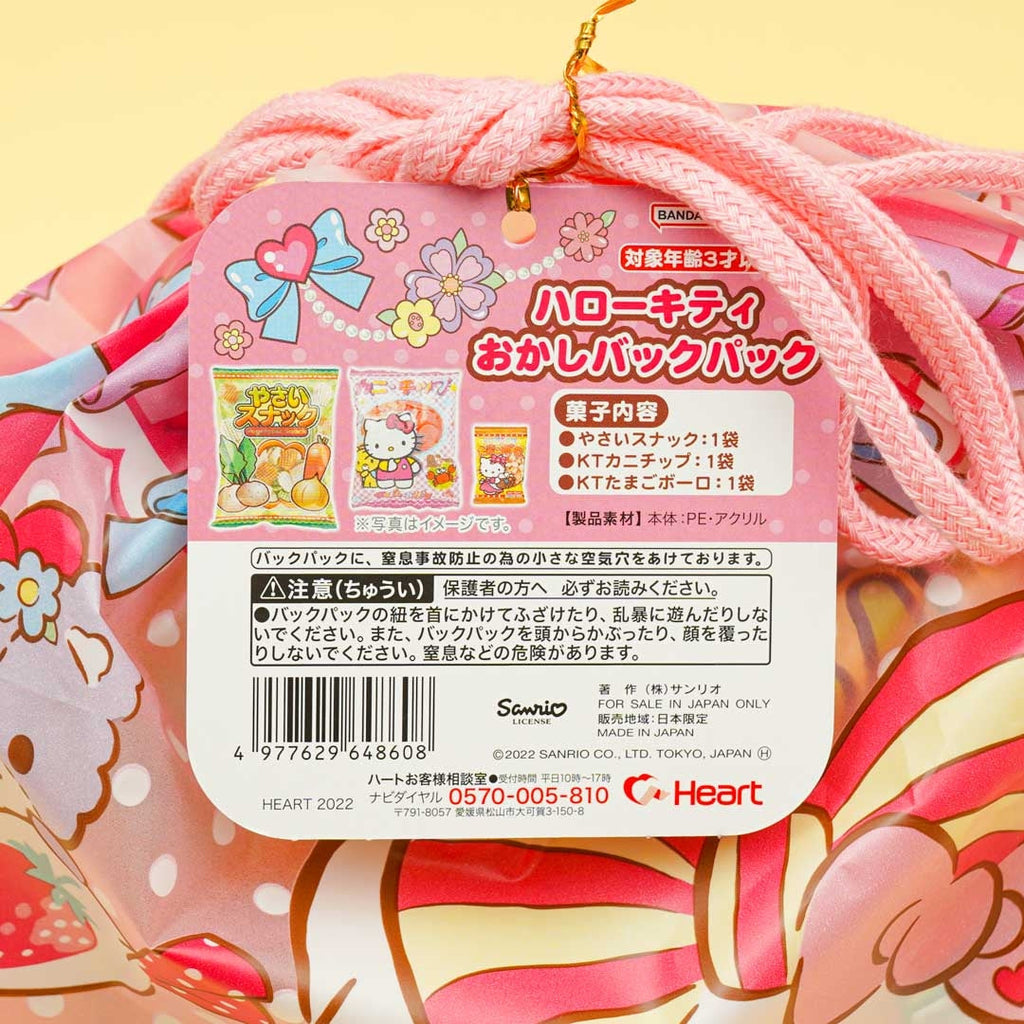 Use this super kawaii drawstring pouch to store your trinkets! It features prints of Hello Kitty. Inside is three different packs of snacks showcasing Hello Kitty prints.