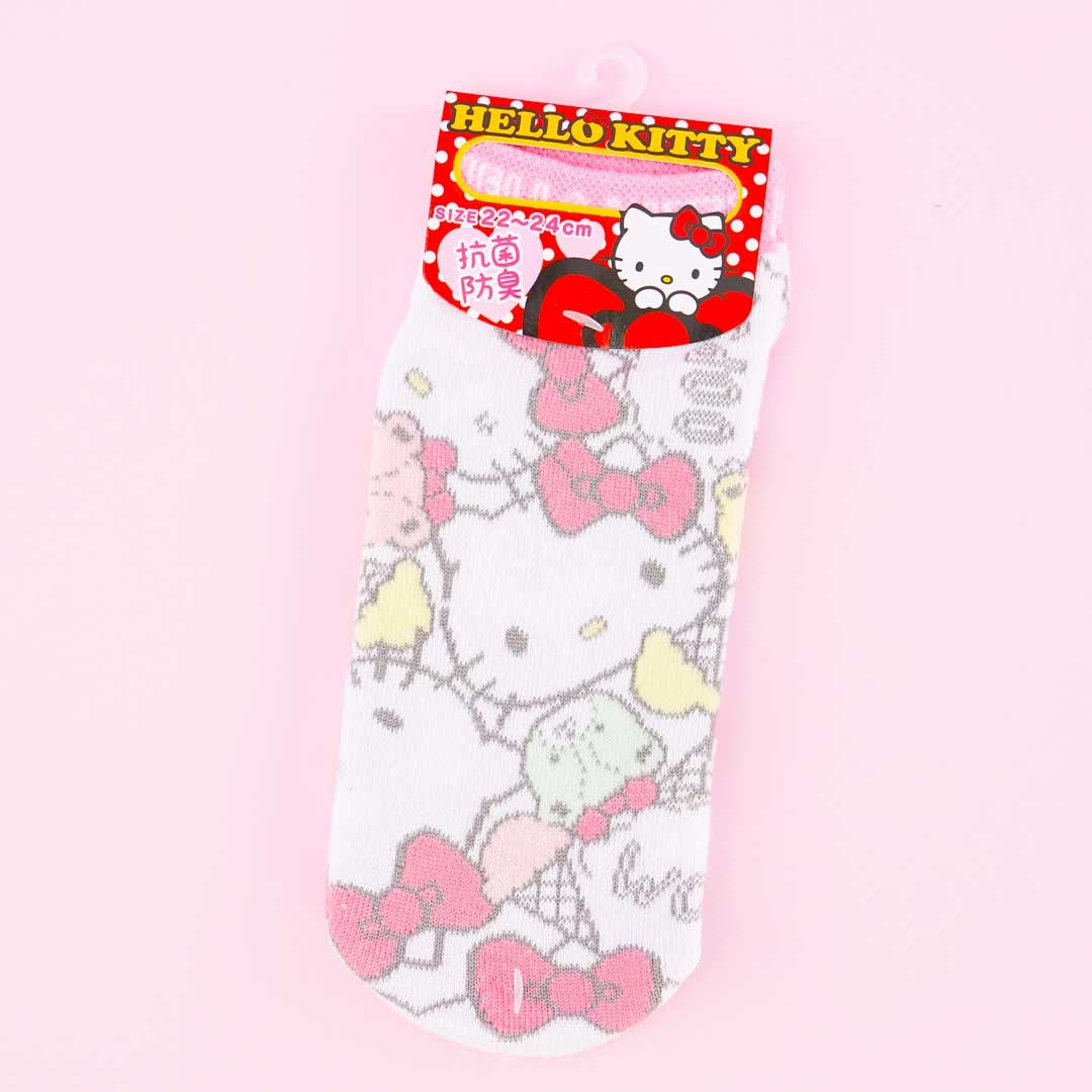 This cute pair of socks is covered in prints of Hello Kitty! Don't forget to put it on before wearing your shoes. Each sock has a lining made with antibacterial specifications.