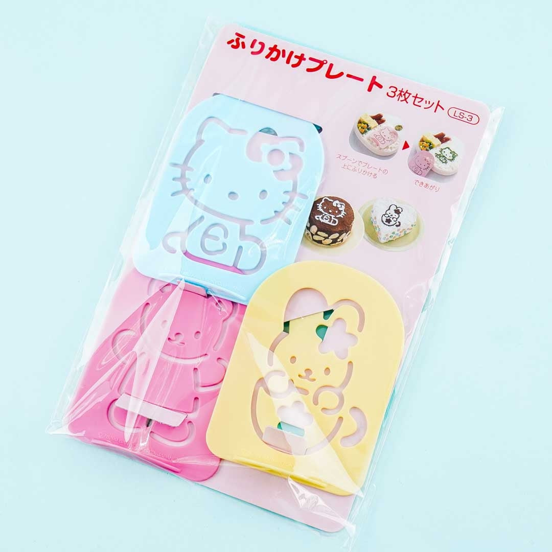 Give your bento meals a cute look by using these templates when sprinkling furikake on top of your rice! This three-piece set features Hello Kitty and her friends!