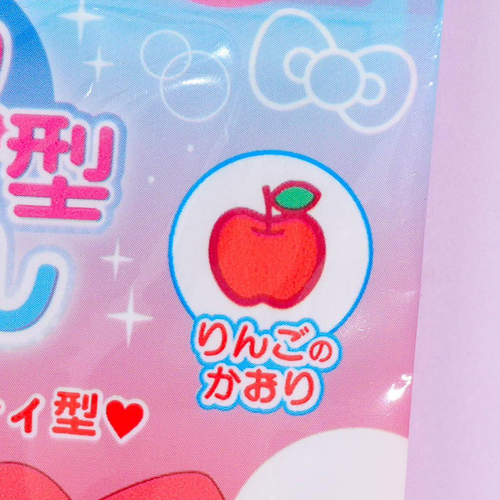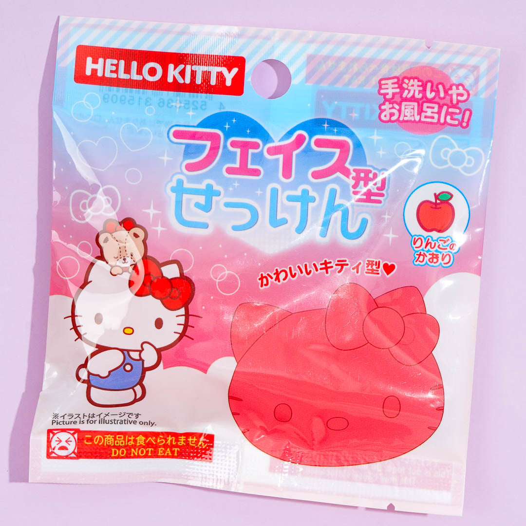 Don't forget to take this Hello Kitty face soap with you in the bath. It has a wonderful apple scent! Remember to remove the protective film from the soap before using it.