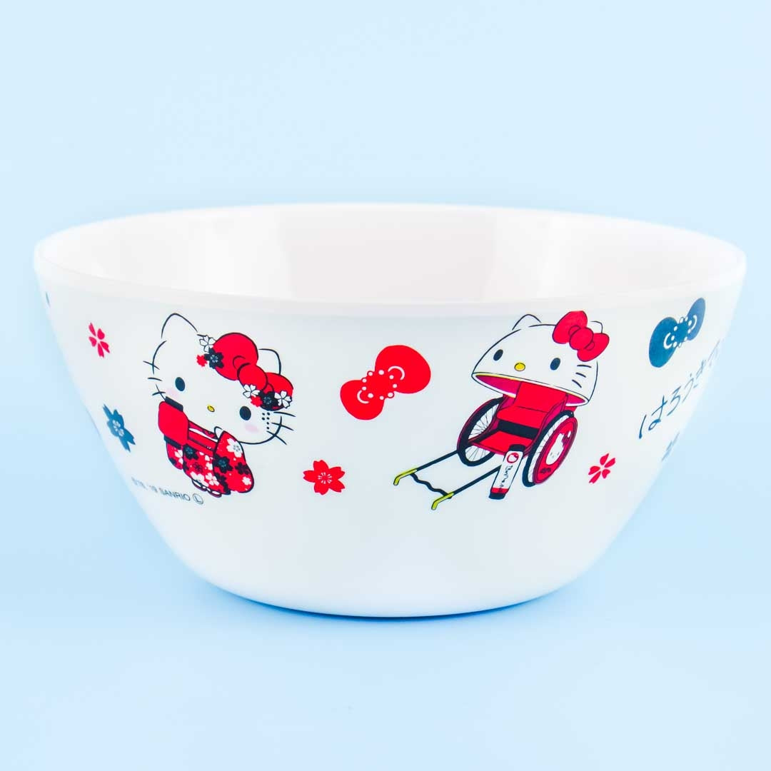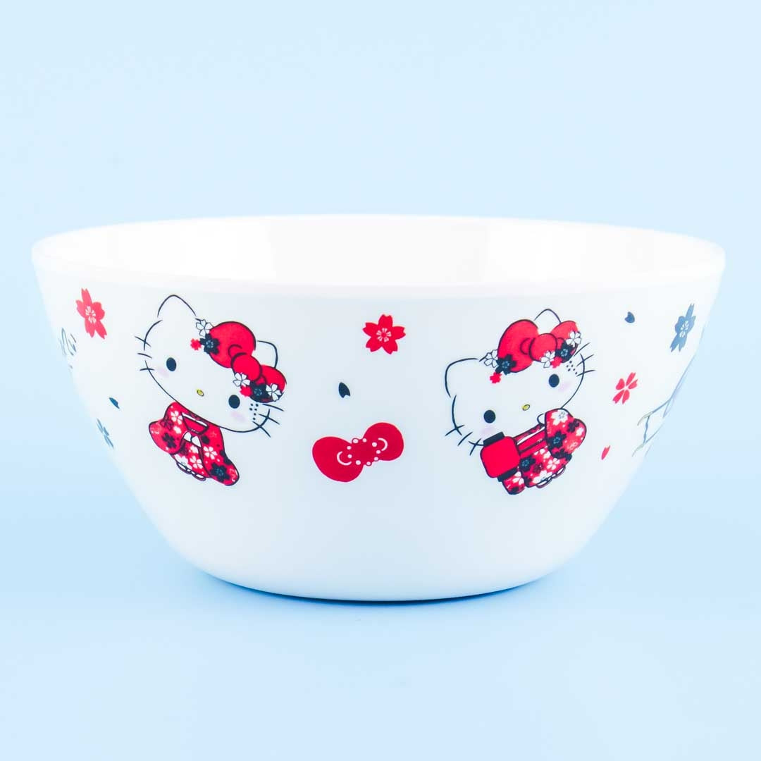 • A kawaii bowl with illustrations of Hello Kitty and sakura blossoms