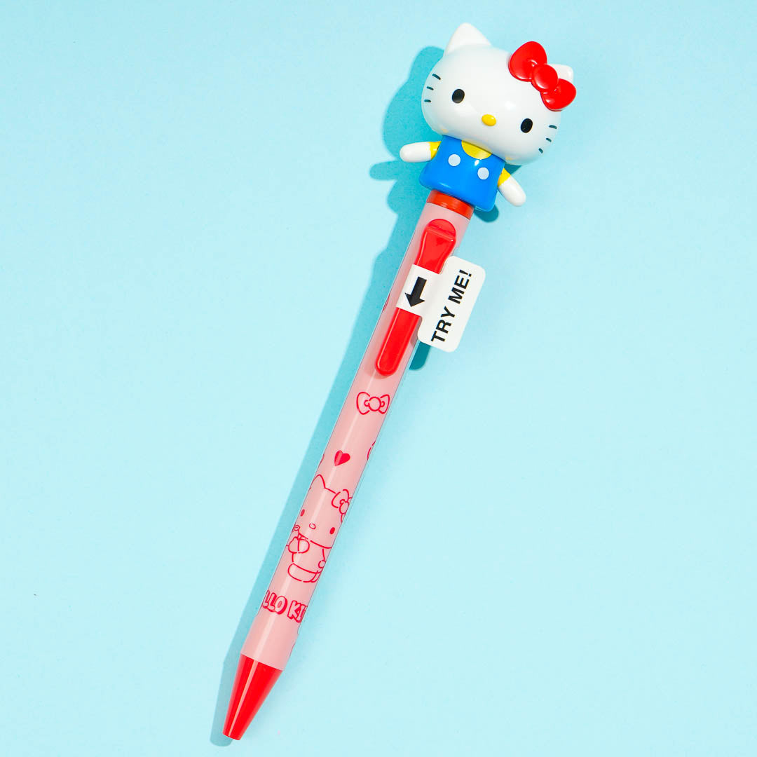 Add this super cute pen to your stationery collection. It features a super cute Hello Kitty topper with arms that move up and down when you press it.