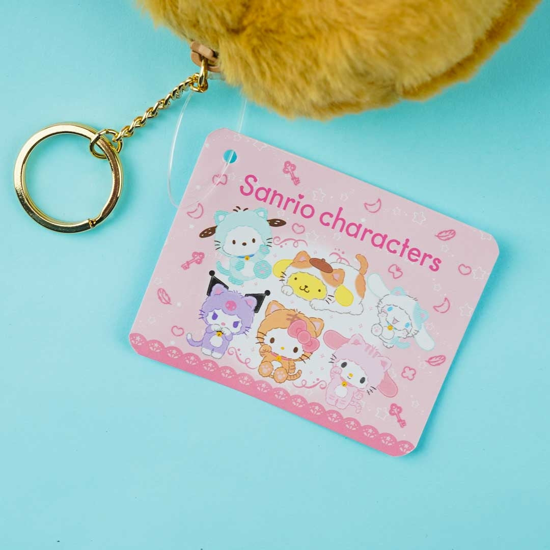 Hello Kitty looks super kawaii wearing a cat costume. Use this fluffy plushie to store your trinkets and other knick-knacks. It has a zipper closure and comes with a metal keyring.