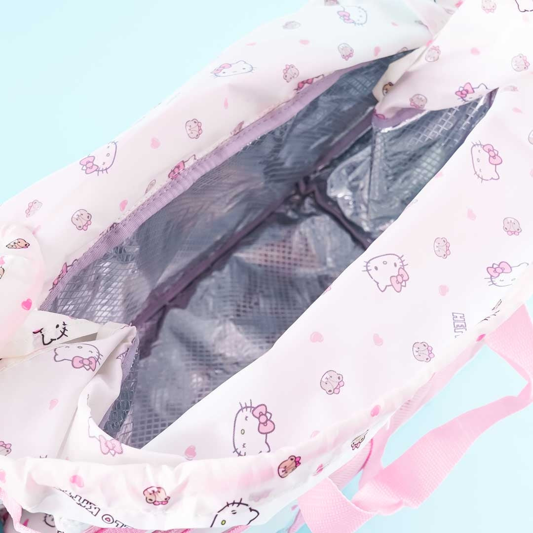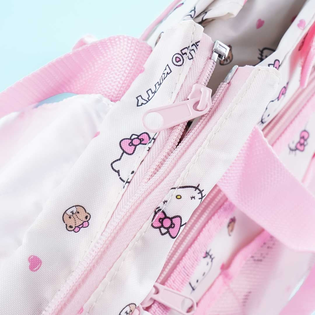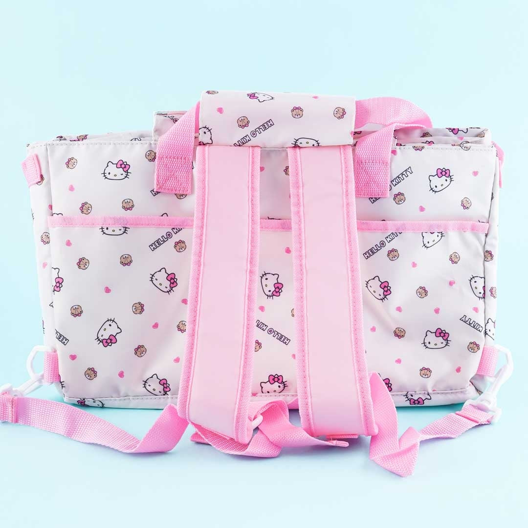 A kawaii multi-strap insulated bag featuring prints of Hello Kitty and hearts