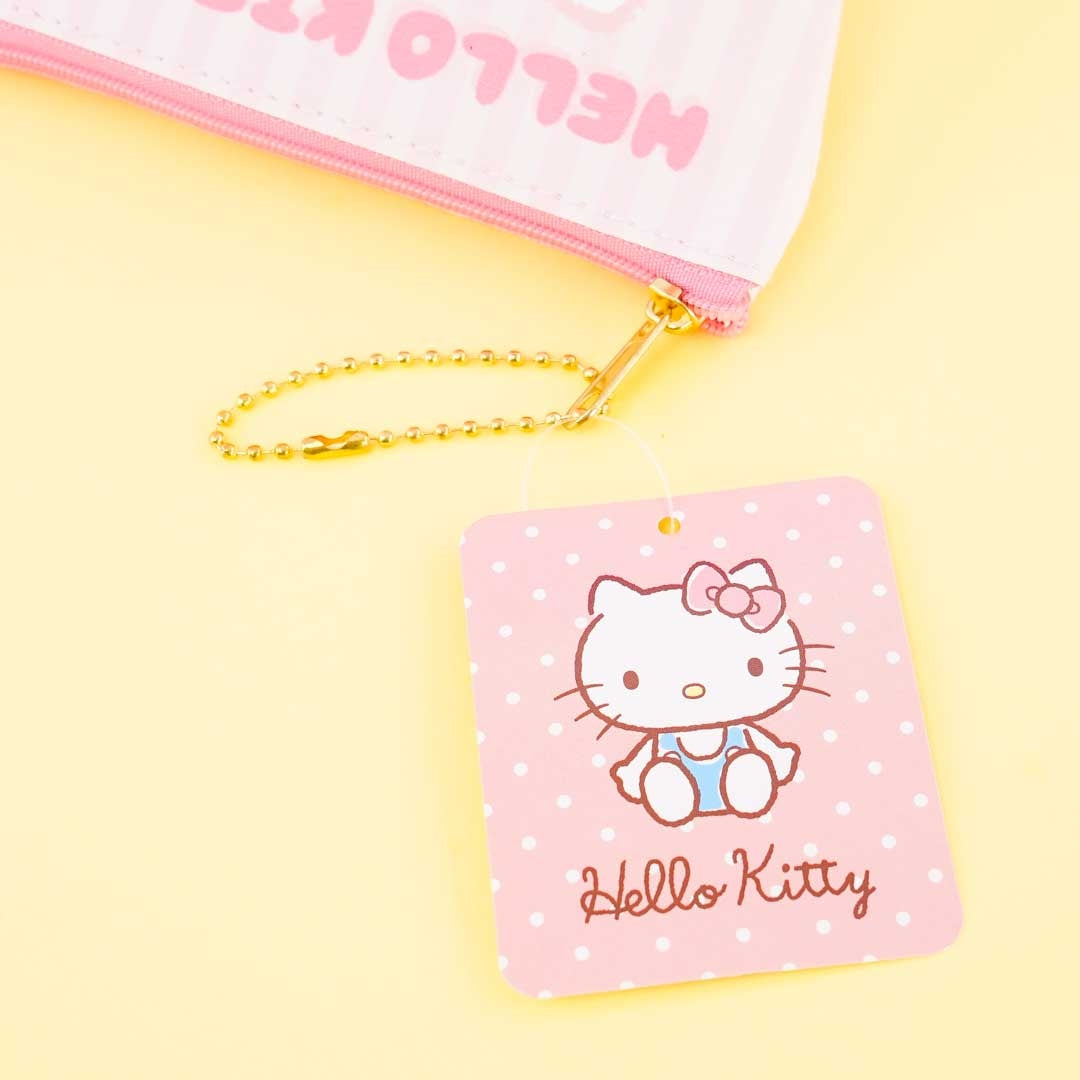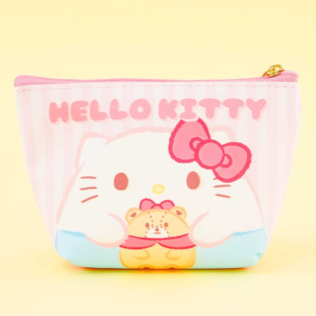A kawaii mini pouch featuring Hello Kitty with a Tiny Chum plushie