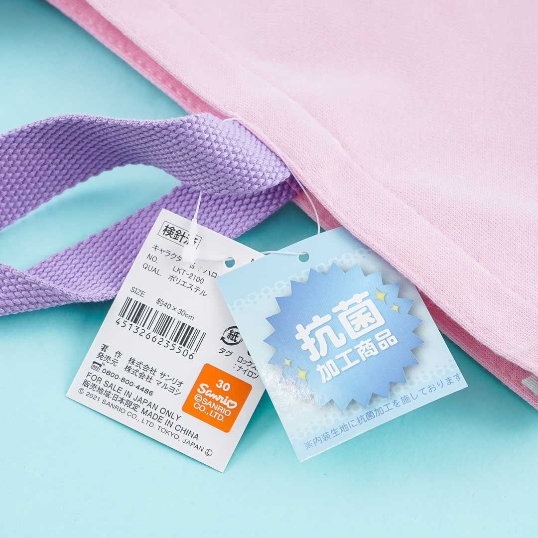 A kawaii tote bag with a tiny embroidery of Hello Kitty’s name