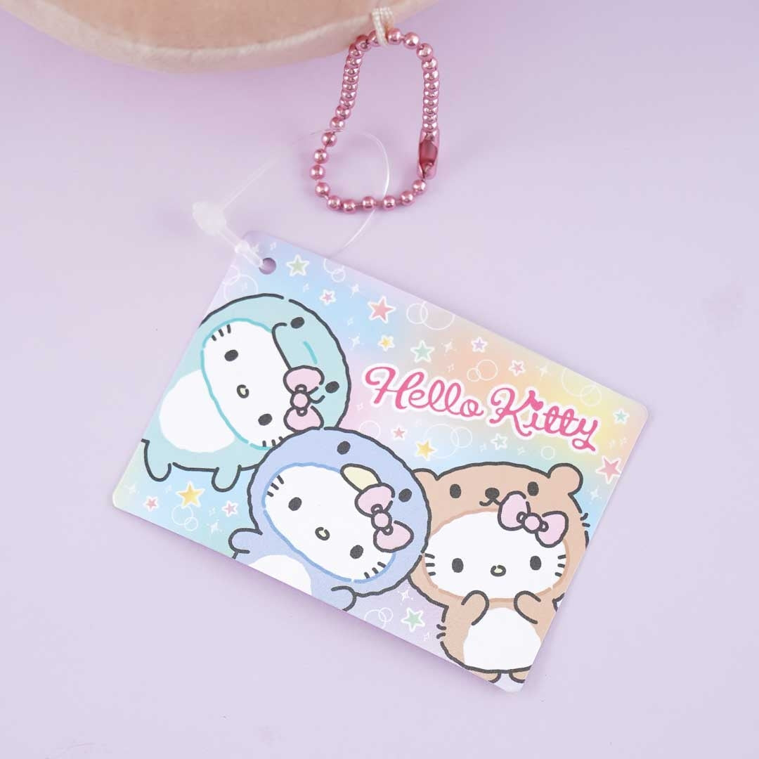 Add this mochi-ball-shaped cutie to your charm merchandise! This medium-sized plushie features Hello Kitty in a onesie small-clawed otter costume as well as a detachable ball chain!