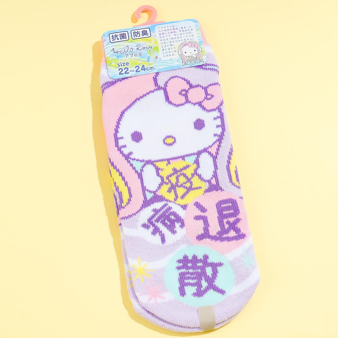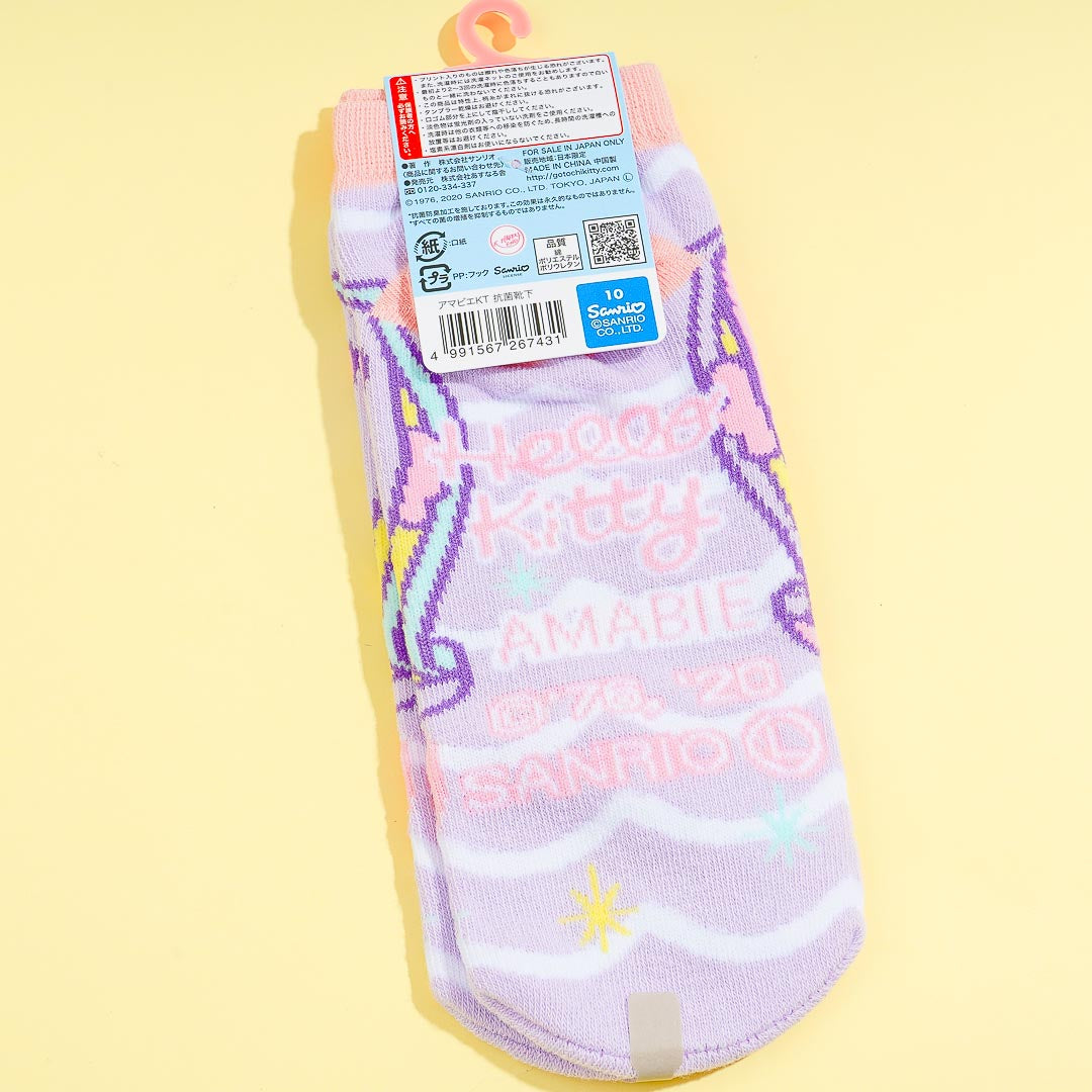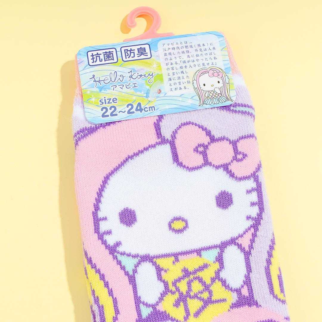 This kawaii pair of socks showcases prints of Hello Kitty transformed into a rainbow mermaid! Wear it before putting on your favorite shoes. It's the perfect pair of socks to wear while visiting cafes.