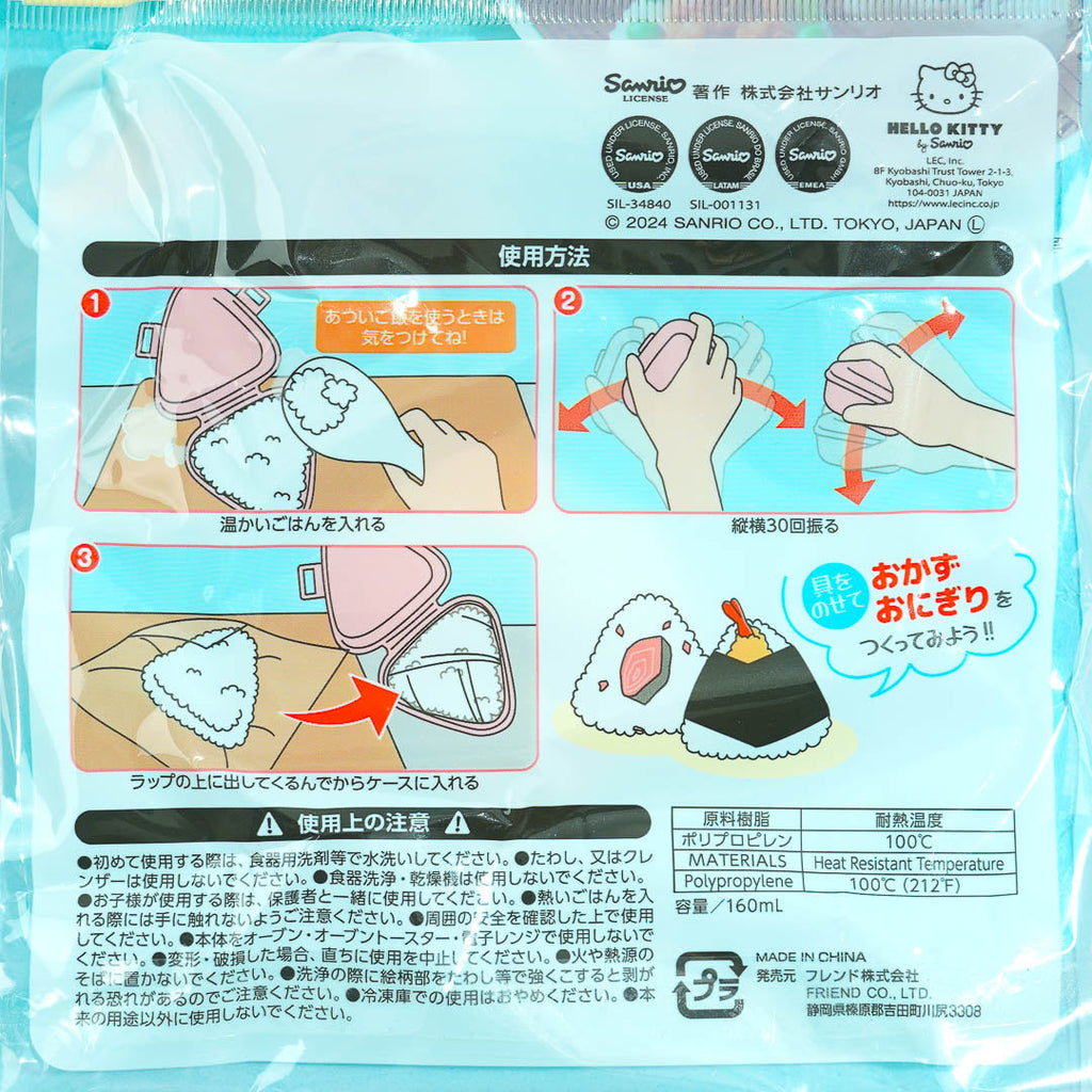 Use this super cute mold to create delicious onigiri or Japanese rice balls for your bento! It features an illustration of Hello Kitty Each enjoying a bottle of milk. This rice ball maker has two side locks so you can also use it as an onigiri case!