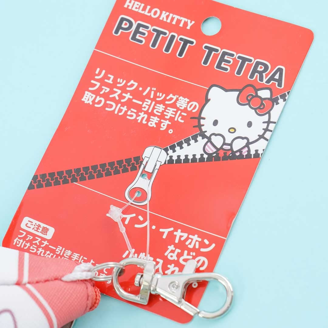 Keep your earbuds safe inside this mini-sized zippered purse! It’s triangle-shaped and has illustrations of Hello Kitty sipping from a tetra juice pack. Attach this to your favorite tote with its metal clip!