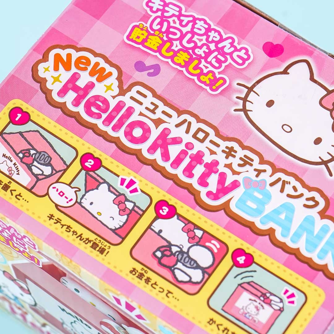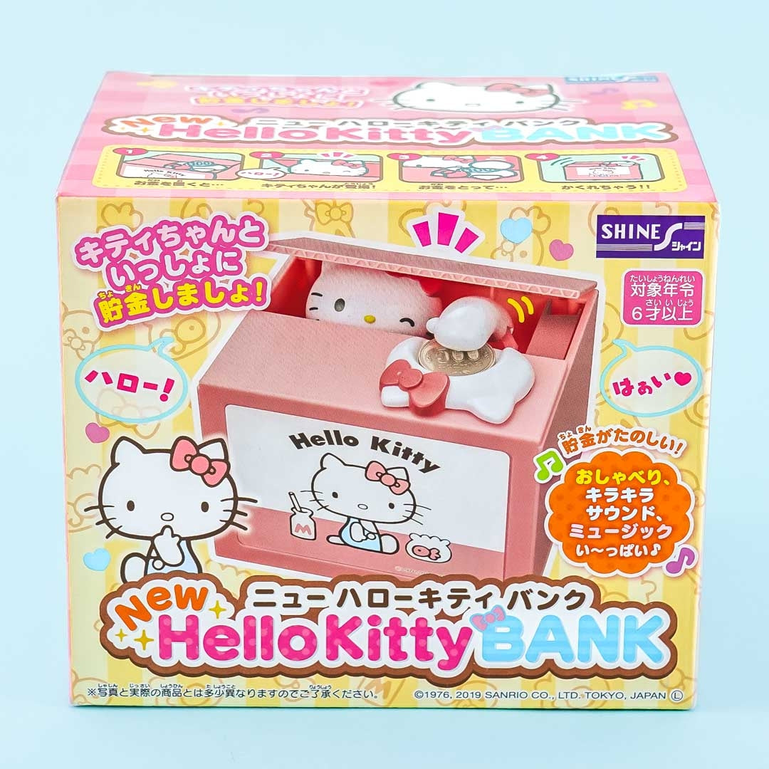 This cute Hello Kitty piggy bank toy is perfect for saving up money. All you need to do is place one coin on the piggy bank's plate and watch Hello Kitty pop up to keep your money in a safe place! Music plays whenever Hello Kitty appears to take your money away.