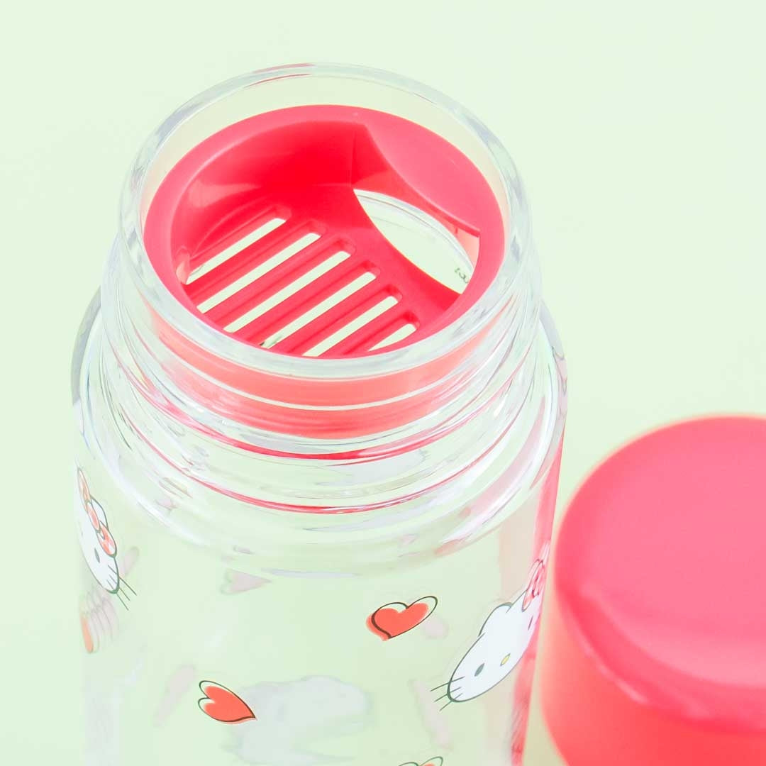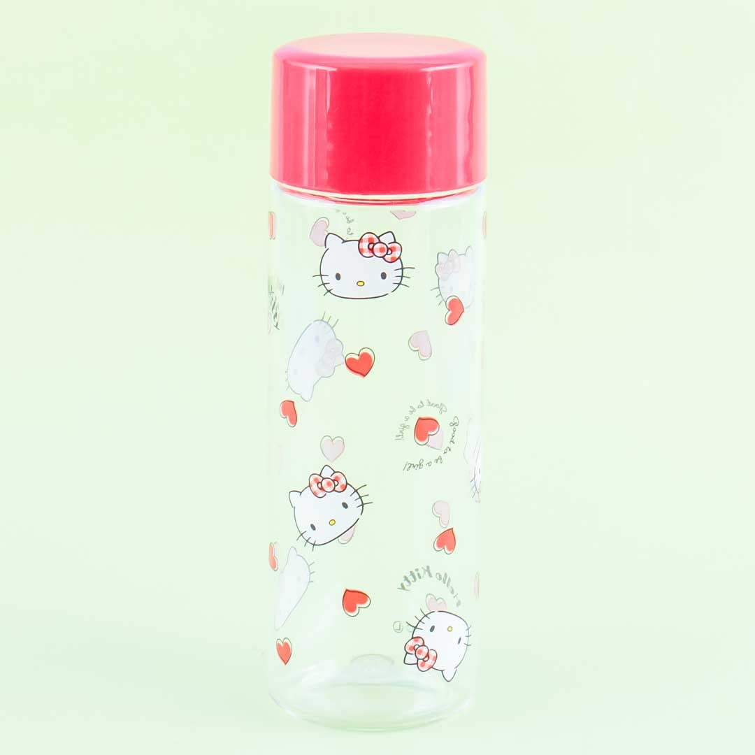 • A mini transparent drinking bottle featuring Hello Kitty and hearts
