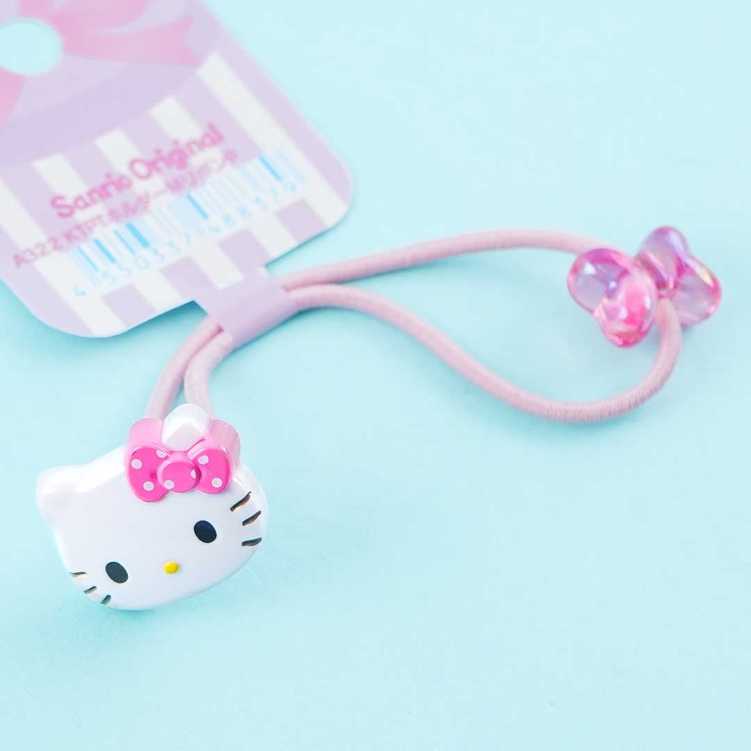 A super cute elastic hair tie with Hello Kitty and holographic ribbon charms