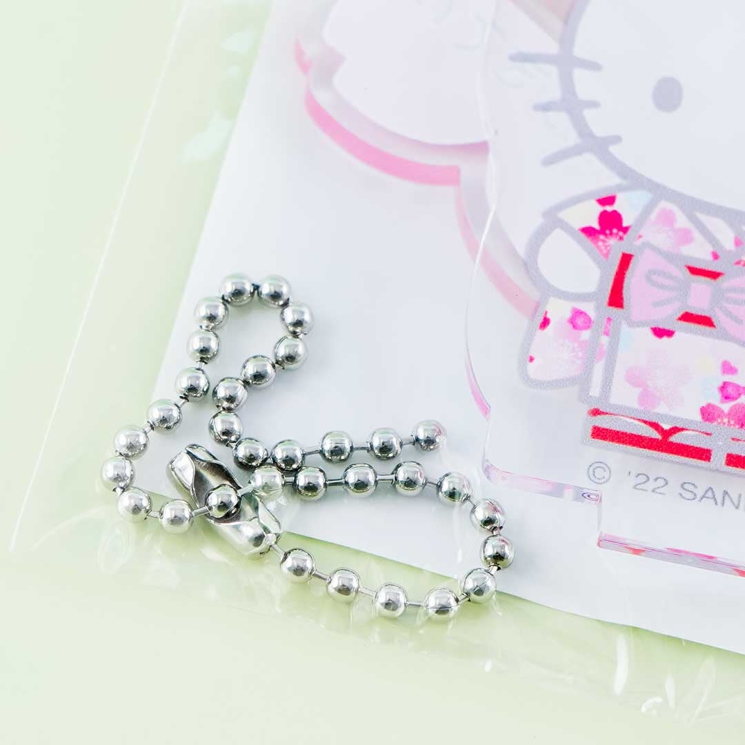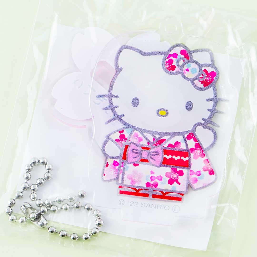 Use this cute acrylic stand to kawaii-fy your desk. It features a print of Hello Kitty wearing a sakura kimono! This stand also comes with a removable ball chain so you can use it as a charm.