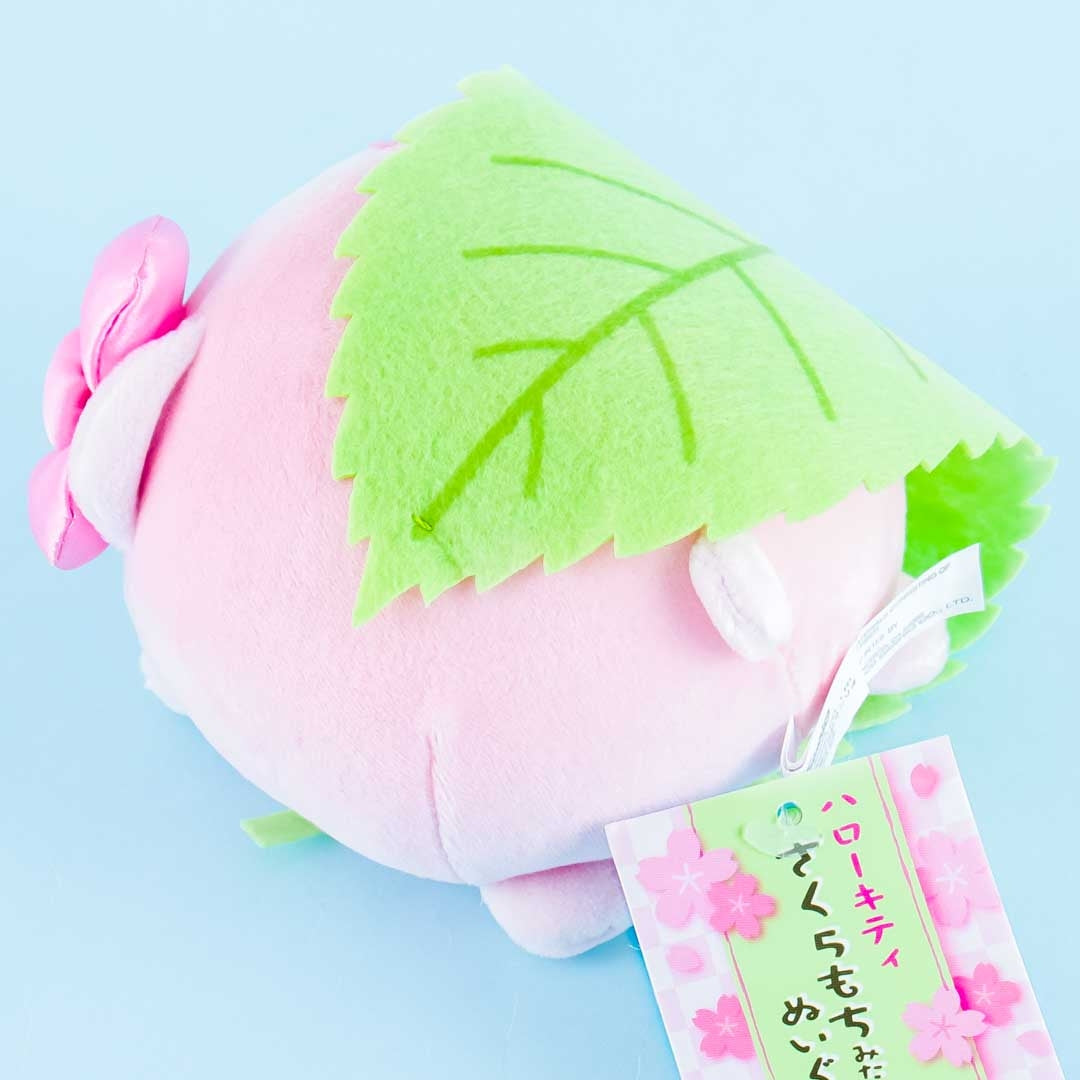 Hello Kitty has magically transformed into a cute ball of mochi or round Japanese rice cake! This super cute Hello Kitty mochi plushie has sakura blossoms on its ear and a leaf wrapped around its body. Have a tea party with this soft medium-sized plushie!