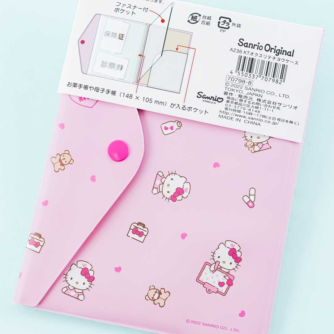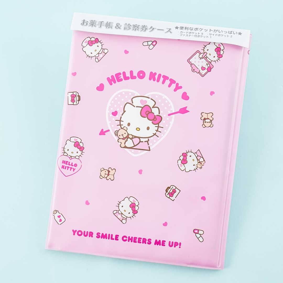 Use this super kawaii card case to store important documents! It's illustrated with Hello Kitty as a nurse. This notebook has 9 card pockets, side pockets, and a zipper pocket that you can use.