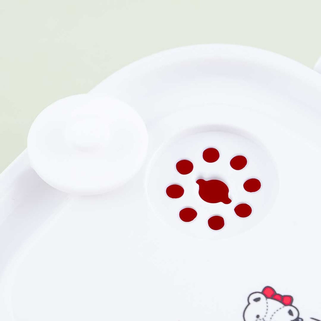 This cute bento box is illustrated with Hello Kitty and her friend, Tiny Chum! This lightweight lunch box has a detachable divider and an air valve on its lid. Make sure to open the air valve before heating meals in the microwave with the lid on! You can clean this bento box in the dishwasher.