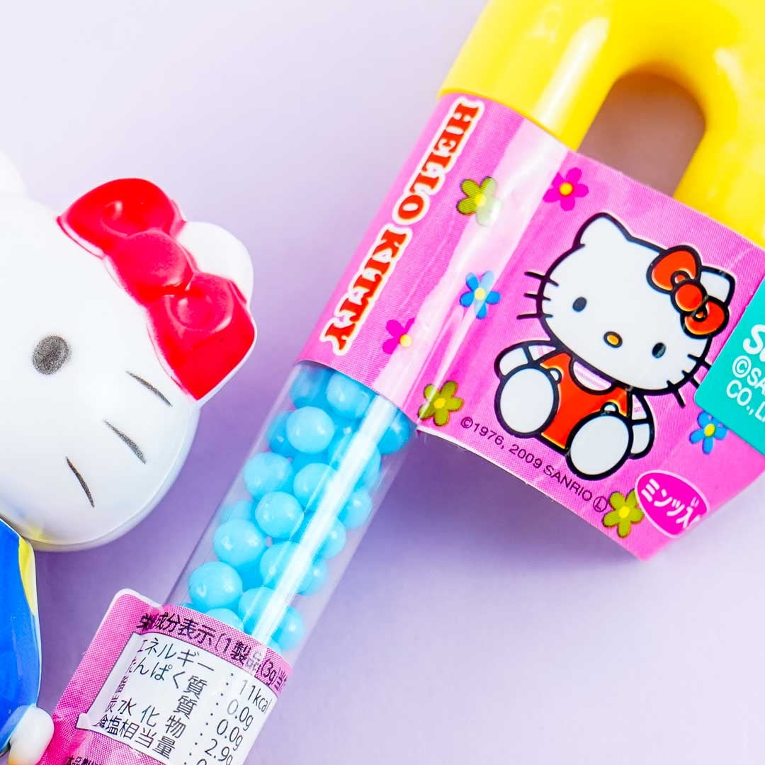 Have fun playing with this cute Hello Kitty tricycle toy! It has a cane filled with tasty mints.
