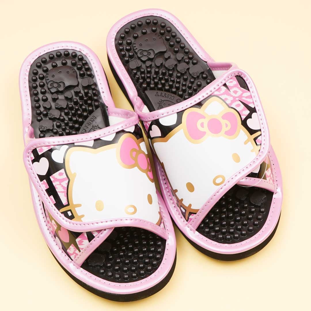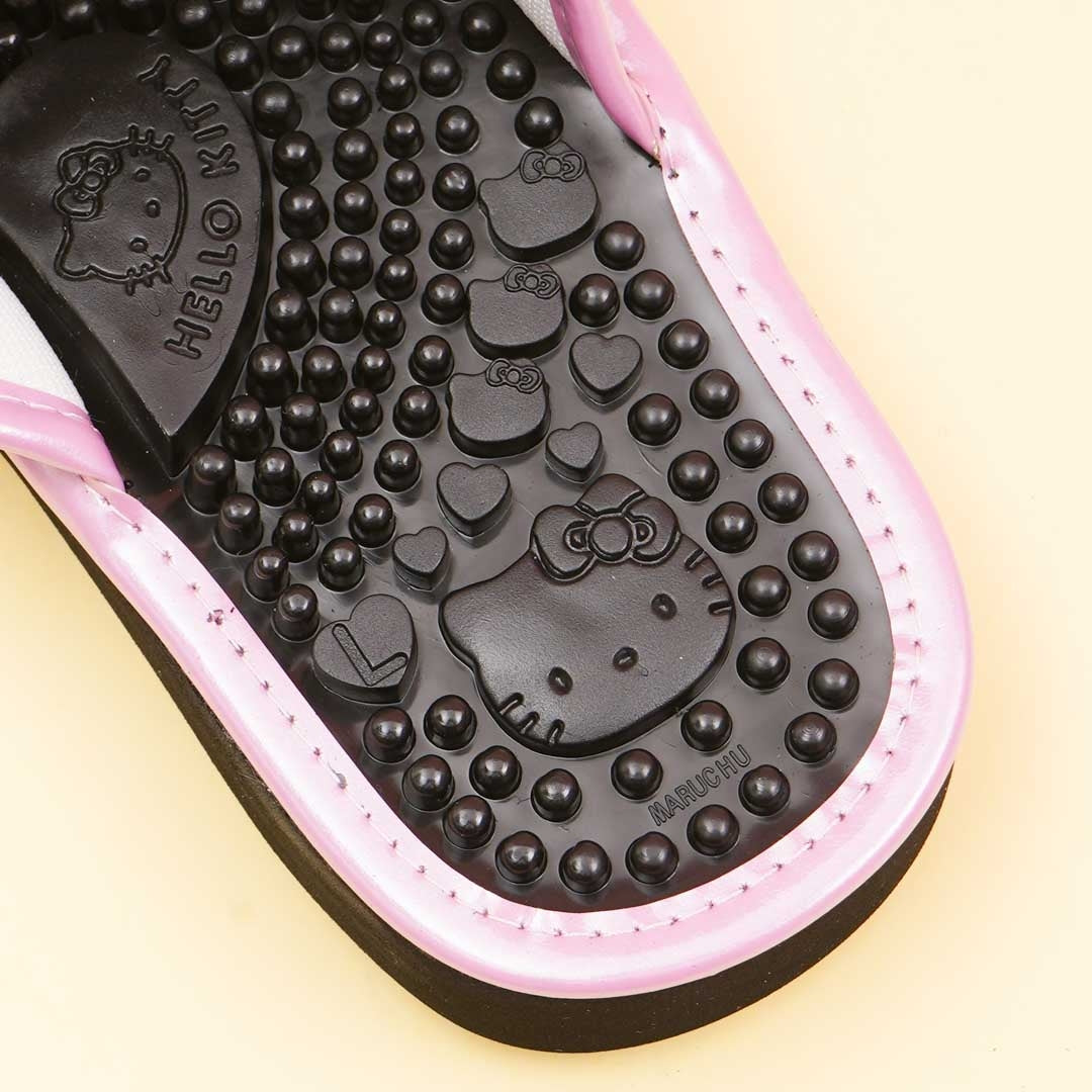 Stay comfy while walking around the house by wearing this cute pair of pink sandals illustrated with Hello Kitty! It has adjustable velcro straps so you can wear socks together with these slippers. The inner surface of these slippers is studded to massage your feet and keep blood circulating.