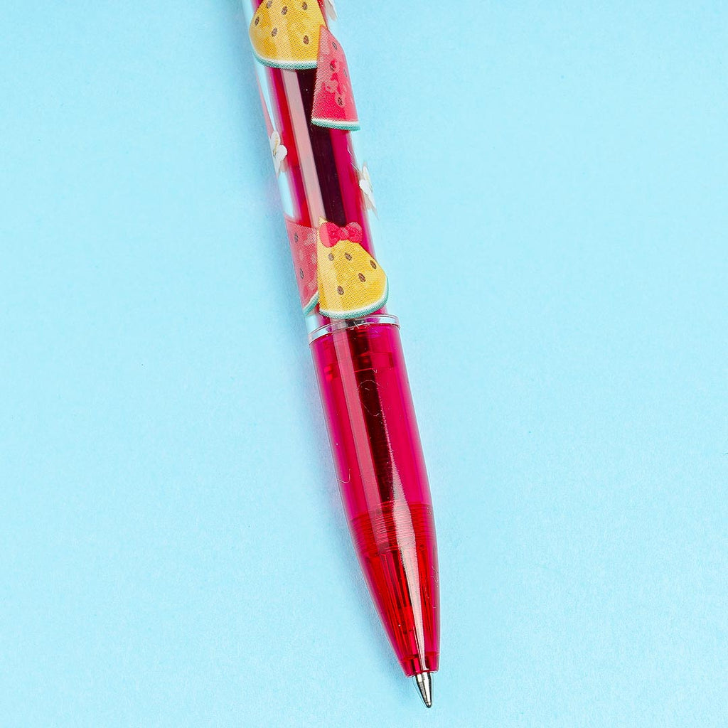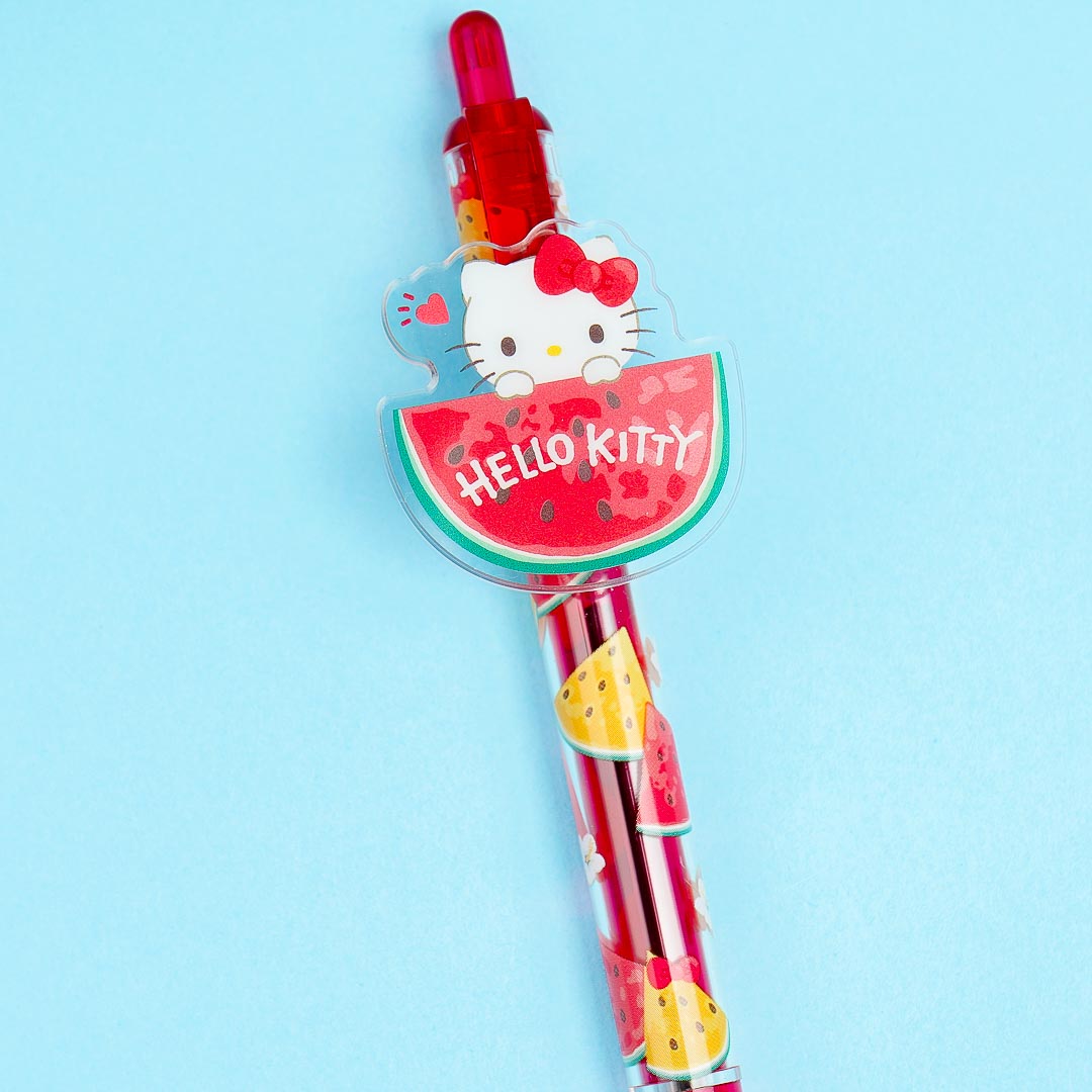 Write down all your creative ideas using this super cute black-inked click pen! It's covered in watermelon prints and has a kawaii Hello Kitty acrylic charm.