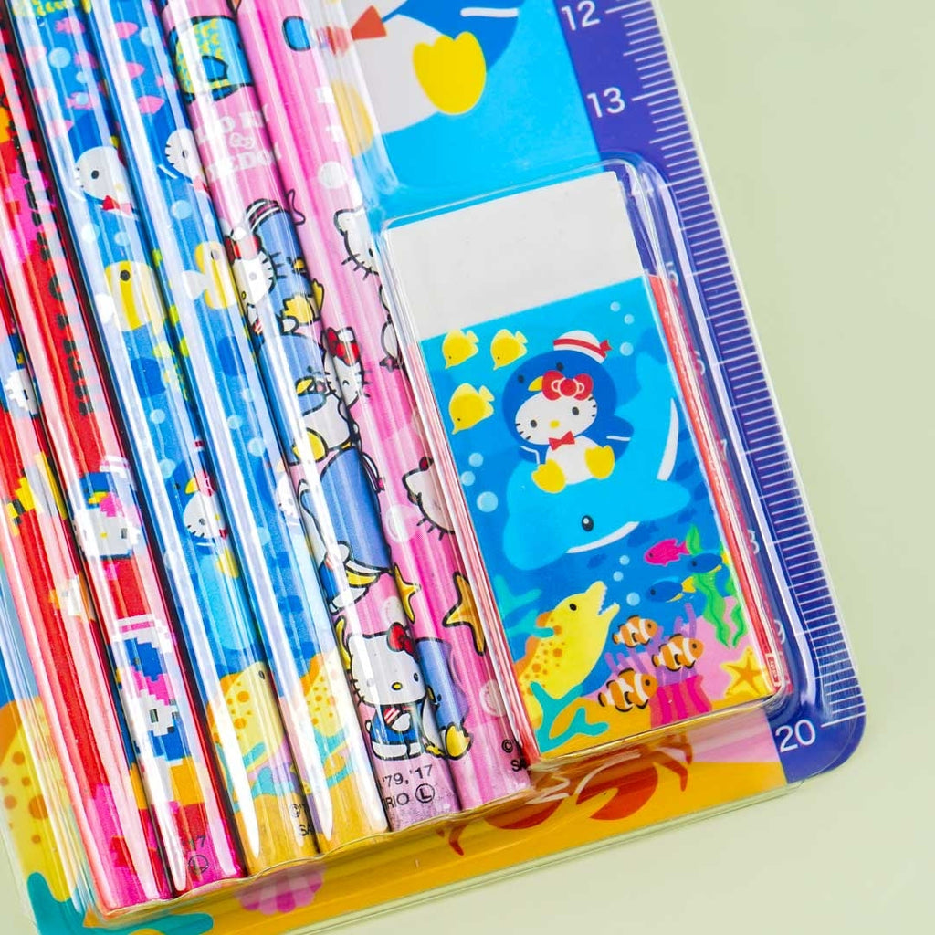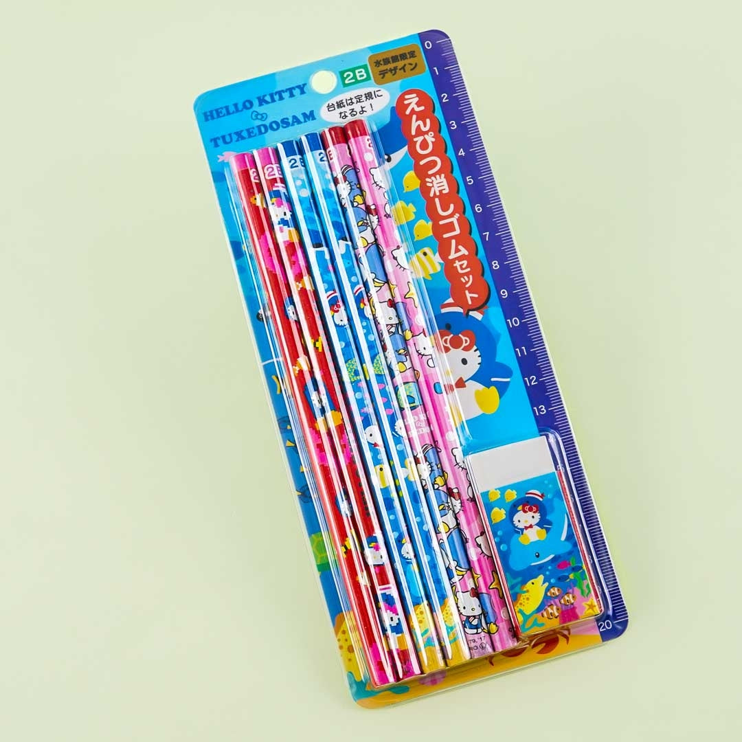 Have fun sketching using this kawaii stationery set covered in prints of Hello Kitty dressed as Tuxedosam! It has six 2B pencils and an eraser that you can use.