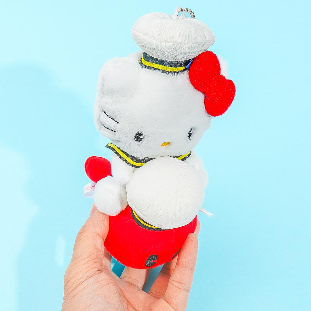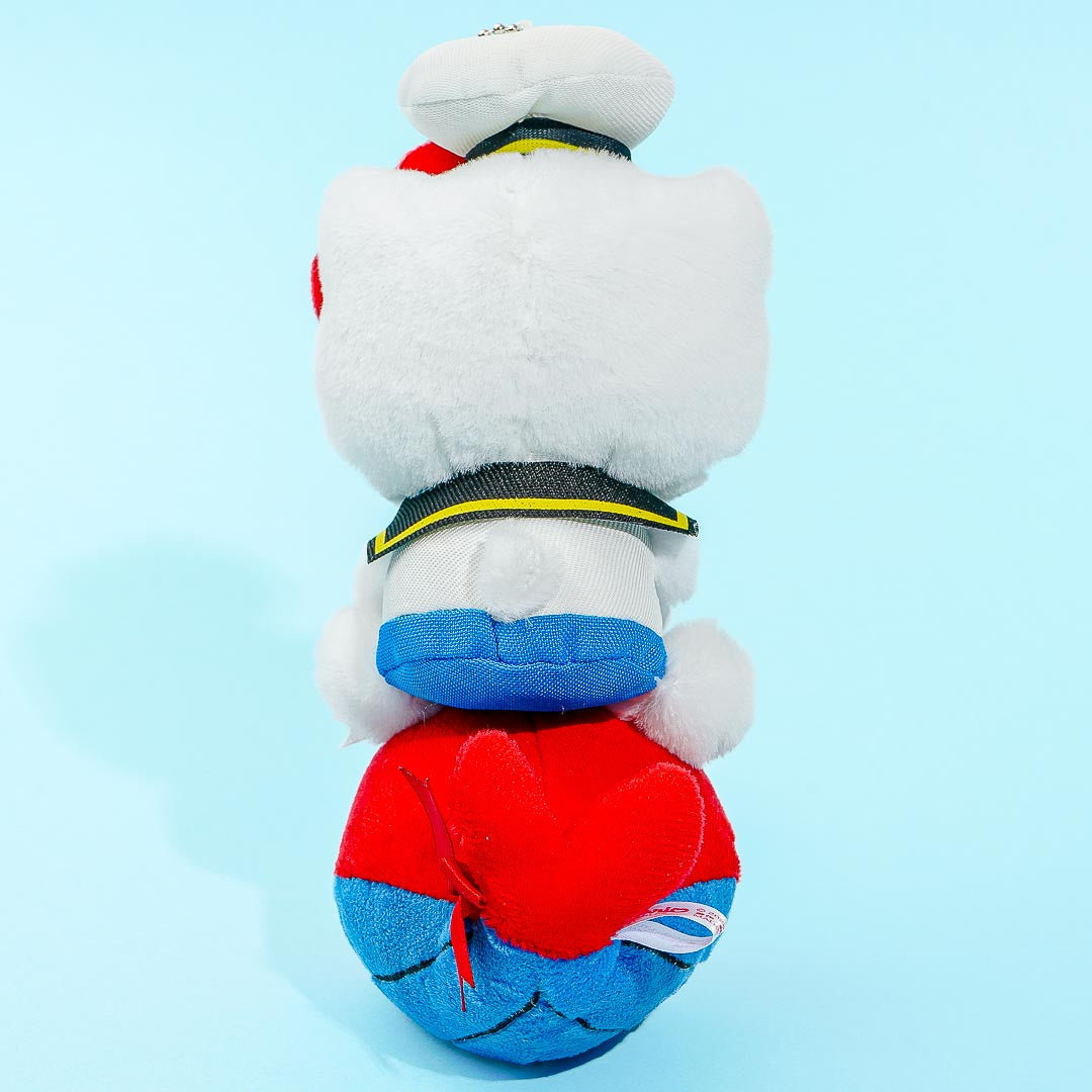 Jazz up your plain backpack by attaching this kawaii plushie charm! It features sailor Hello Kitty riding on the iconic red whale mascot of Ottotto — the popular Japanese sea animal-shaped crackers from Morinaga! The cute set also comes with a yummy cup of Ottotto crackers.