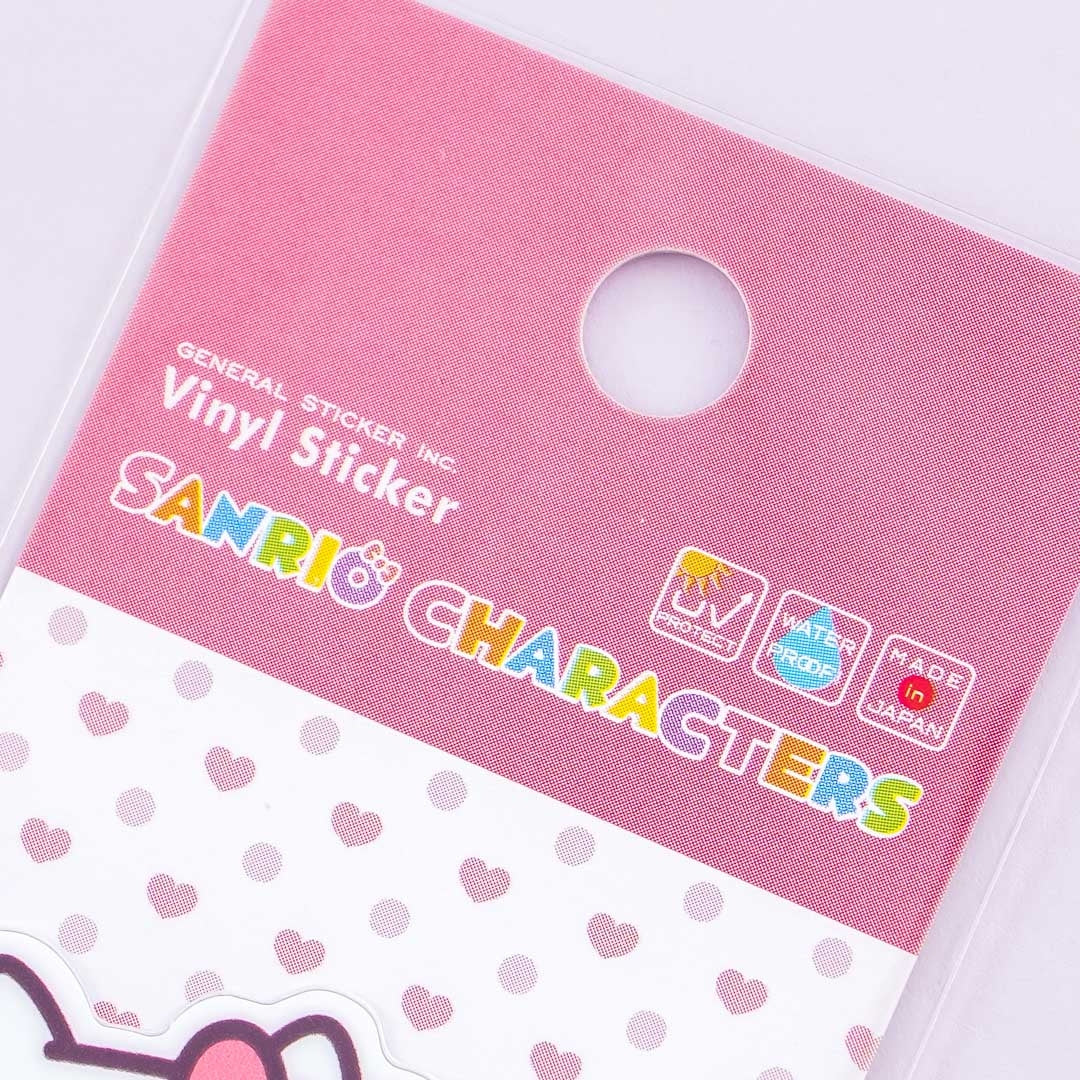 This die-cut sticker features a kawaii print of Hello Kitty and Tiny Chum both blushing and a small heart! Use this vinyl deco sticker to decorate your windows! It’s made of waterproof material and can easily be removed when needed.