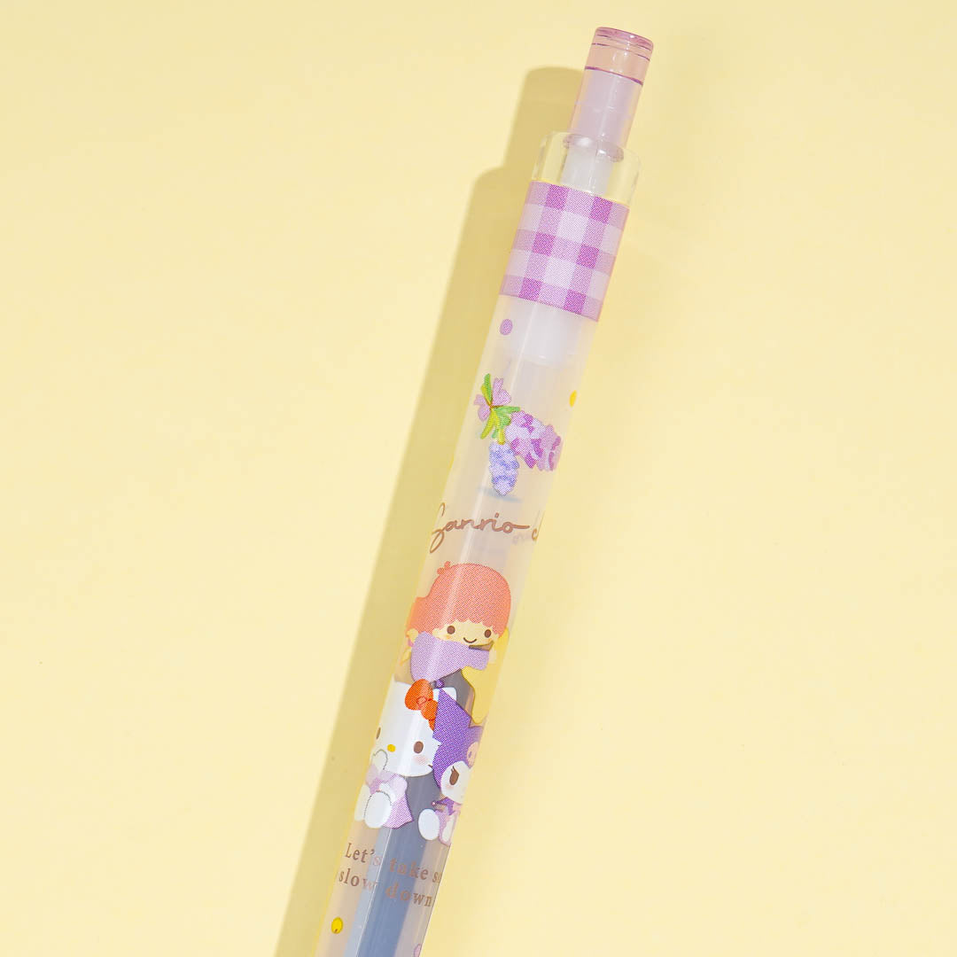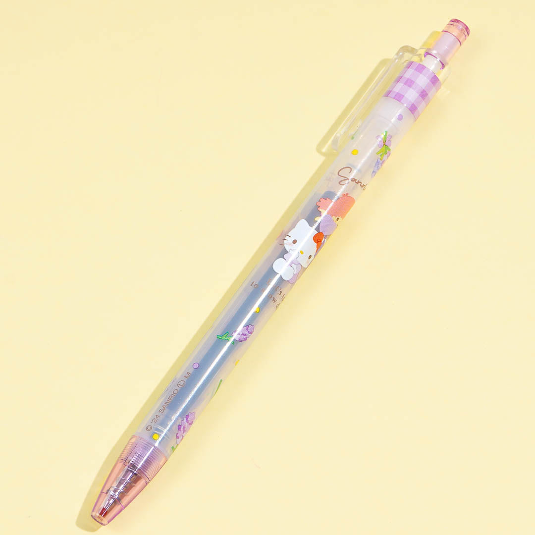 Write sweet colorful messages using this cute gel pen! It's decorated with prints of girl Sanrio Characters and pretty lavenders. Simply click the top to retract its pen tip.