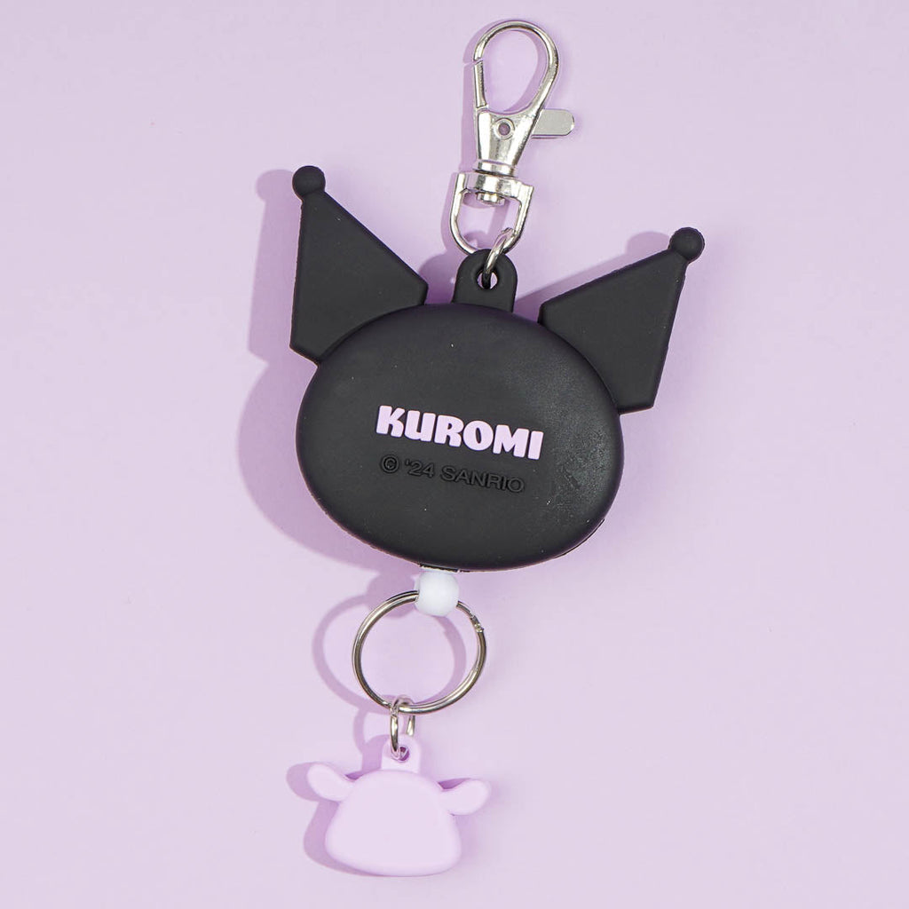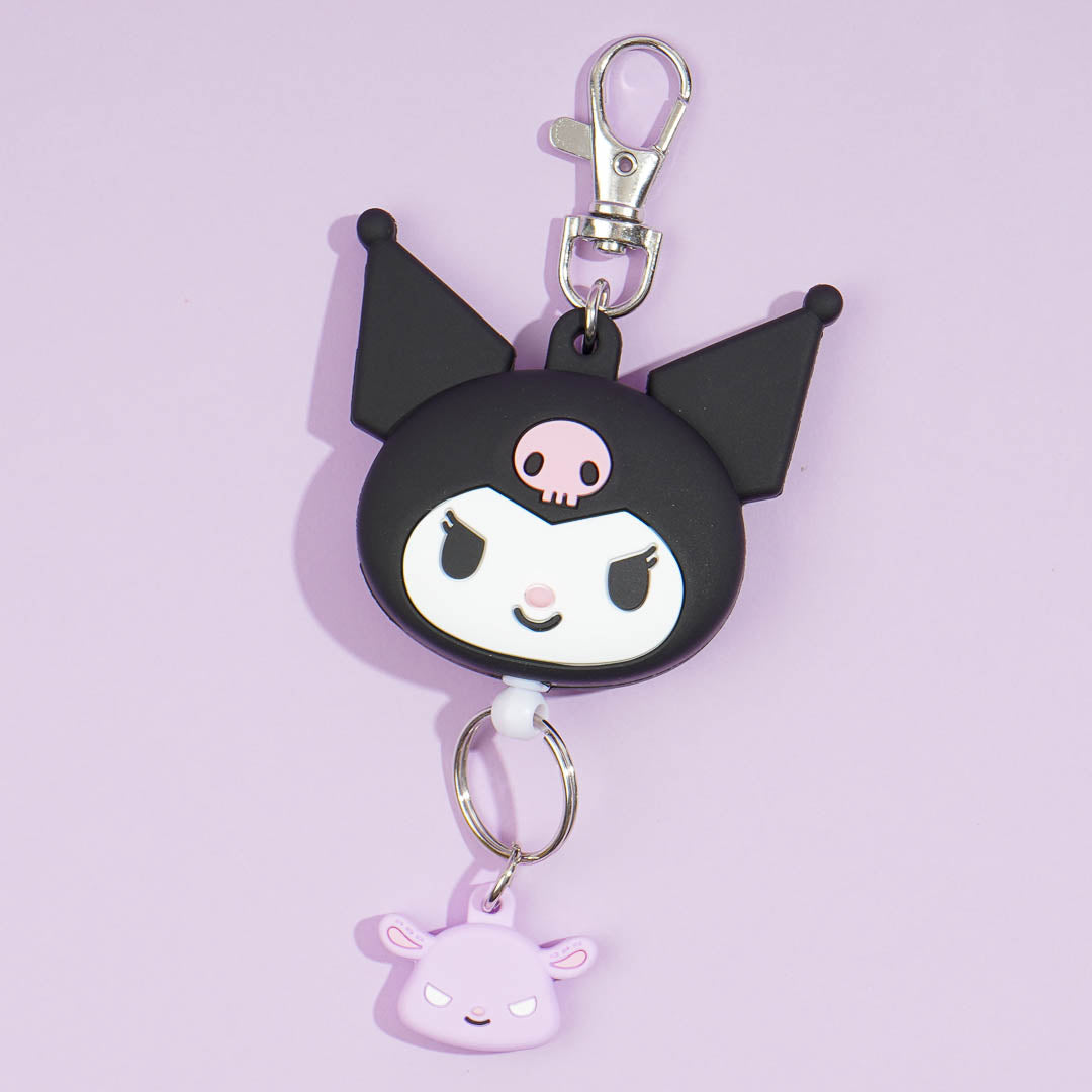 This super kawaii keychain features Kuromi and Baku's faces. It has a metal hook and an extendable reel so you can use your keys while attached to your backpack!