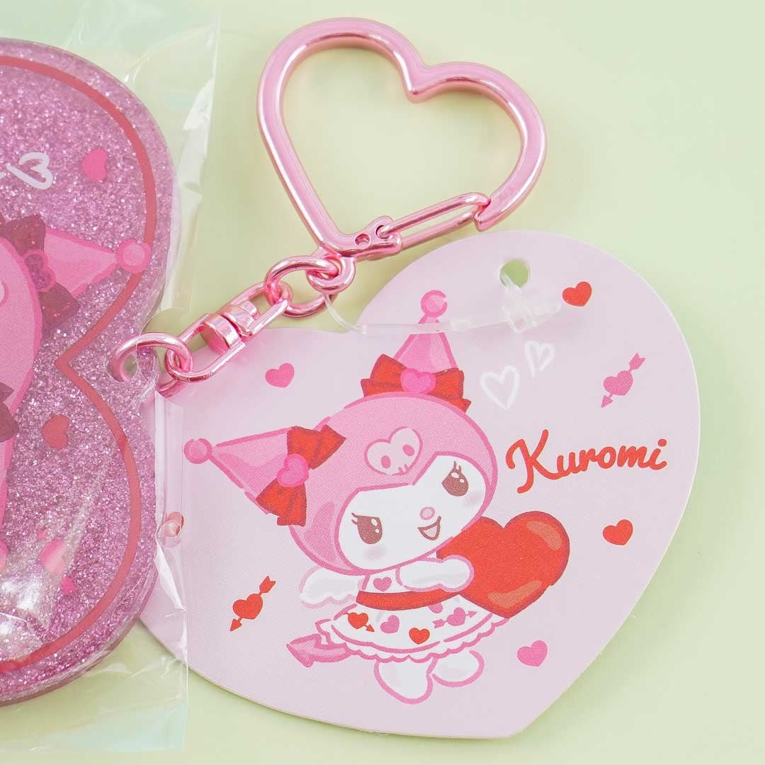 • A cute heart-shaped acrylic charm illustrated with a print of Kuromi