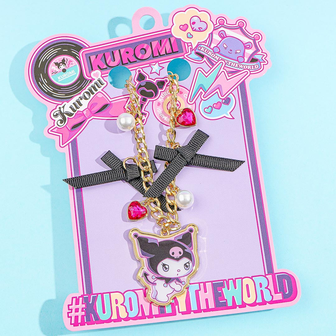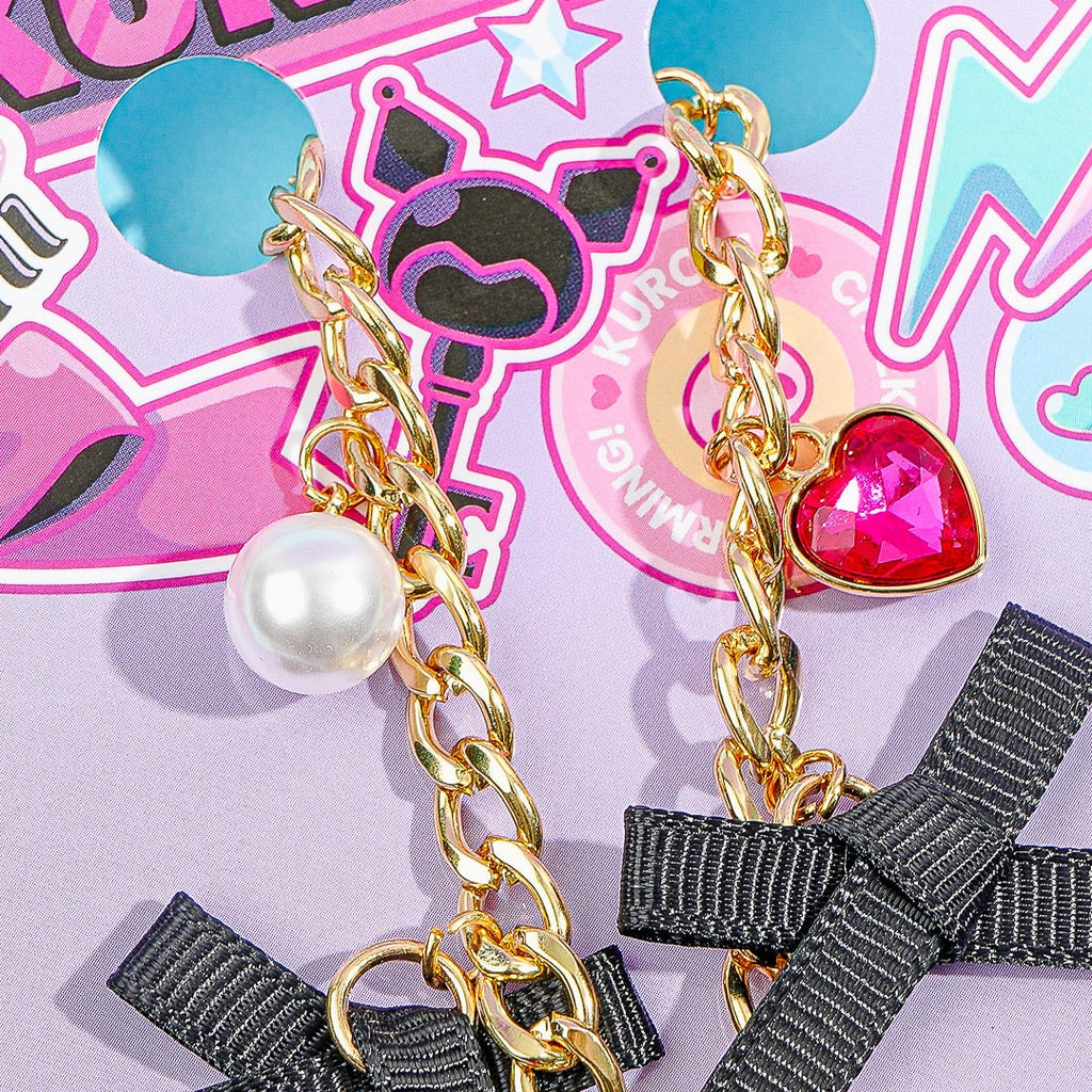 Decorate your favorite shoulder bag with this super cute chain charm! it features a Kuromi decor, pearls, and ribbons. This cute charm comes from the #Kuromifytheworld project.