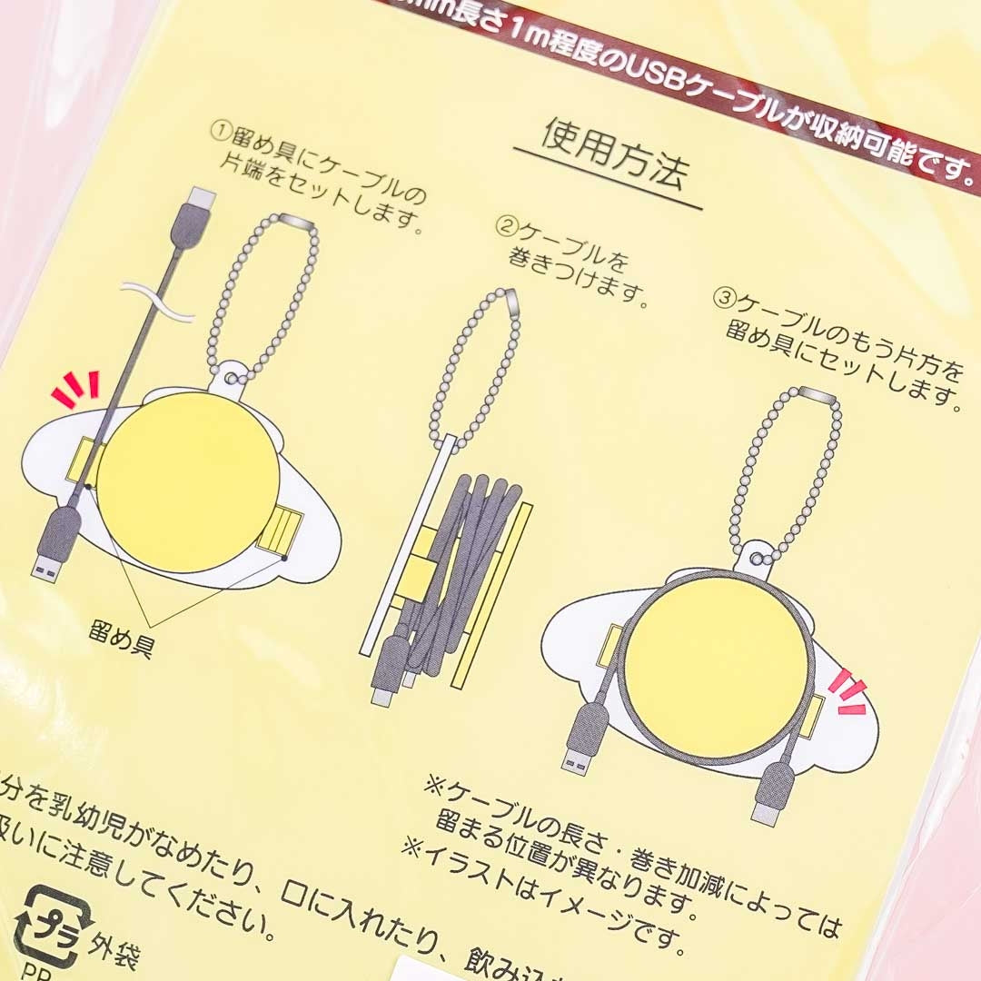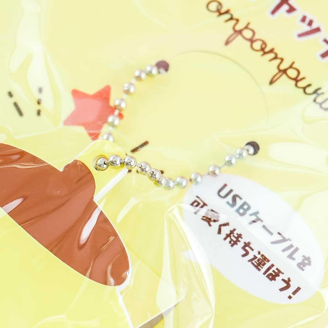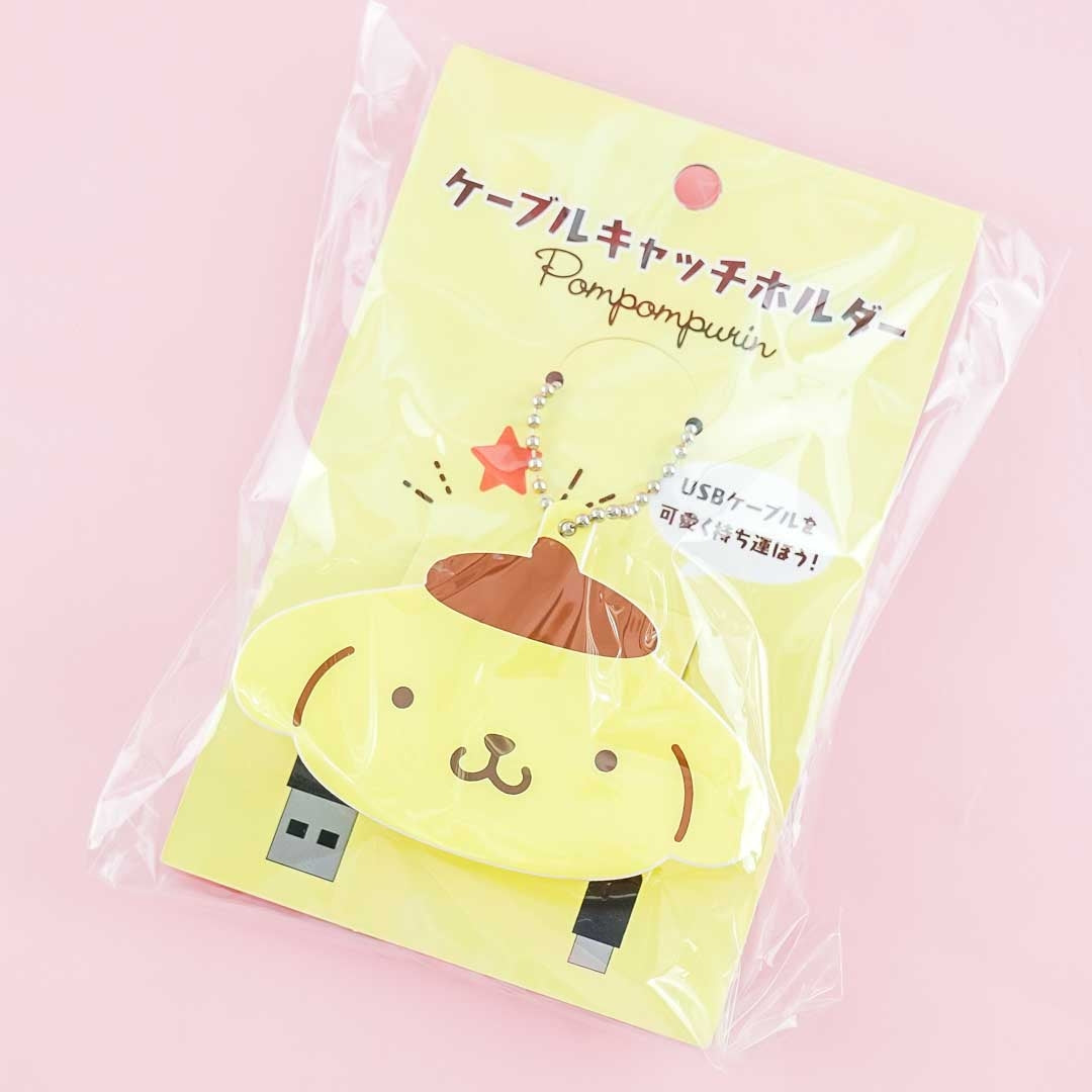 A kawaii Pompompurin cable organizer that doubles as a charm