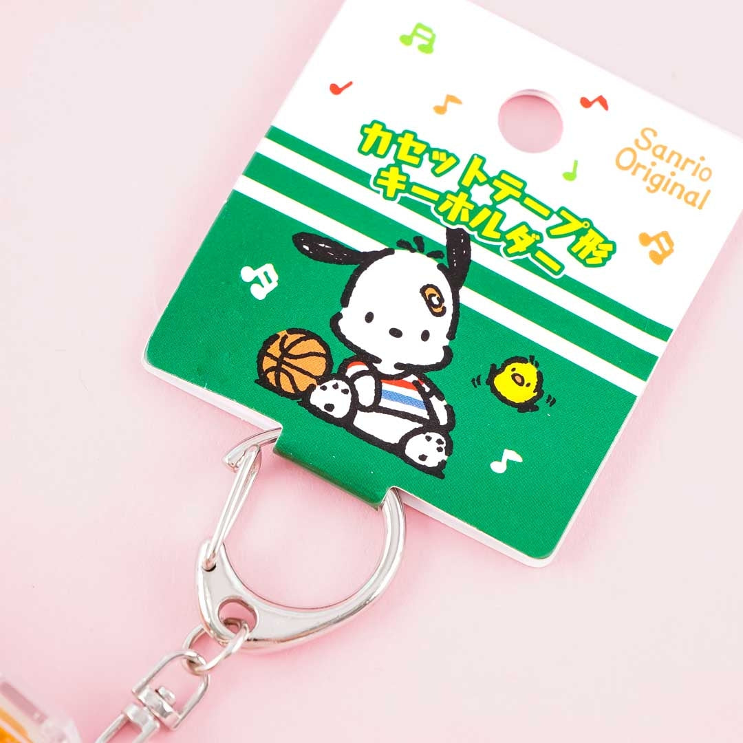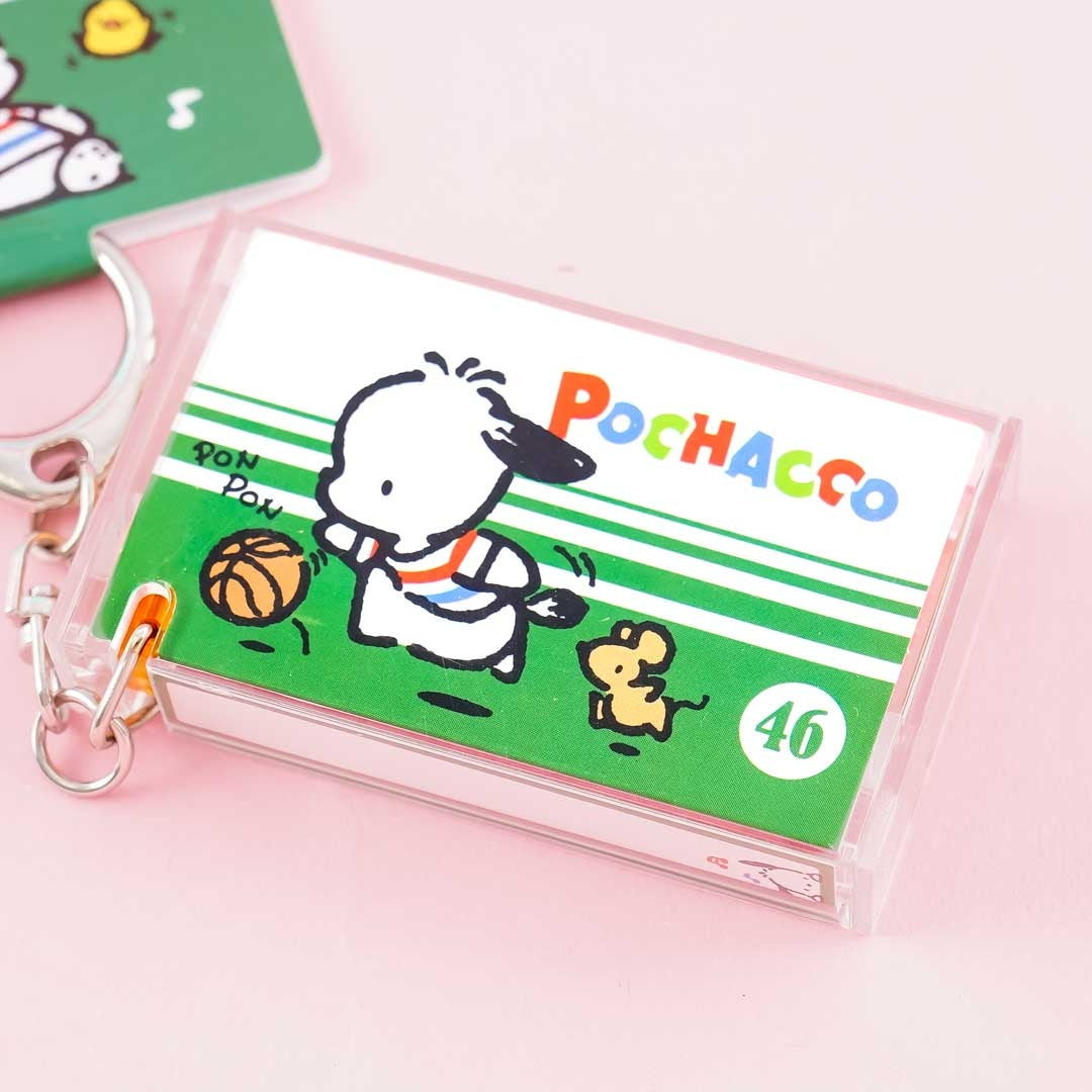 • A kawaii cassette album charm decorated with illustrations of Pochacco playing basketball