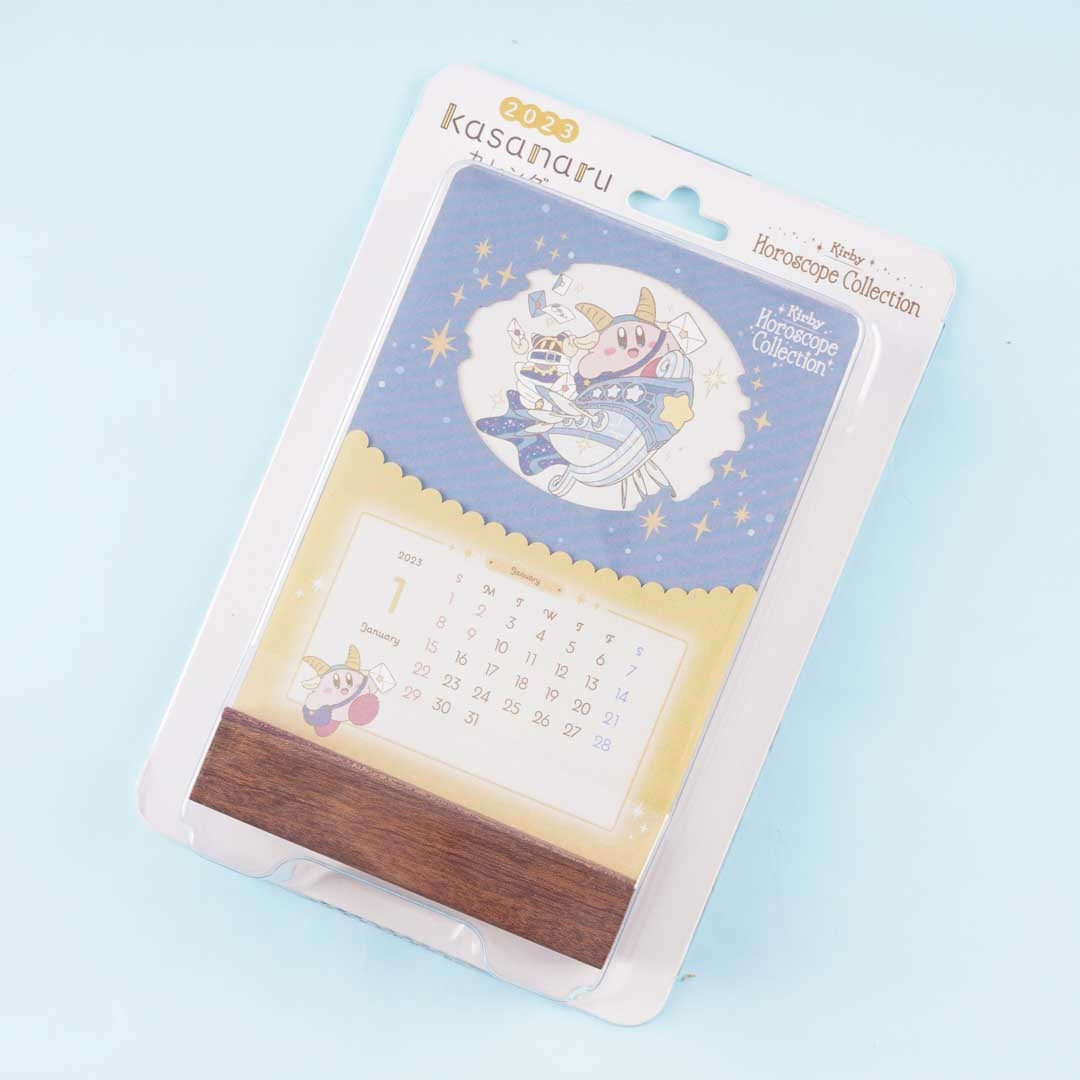 Use this super cute desktop calendar to keep track of important dates. It showcases prints of Kirby wearing horoscope-themed outfits! This calendar has 4 laser-cut frame cards and 12 calendar pages for you to use. Set it on your desk with the help of its wooden stand!