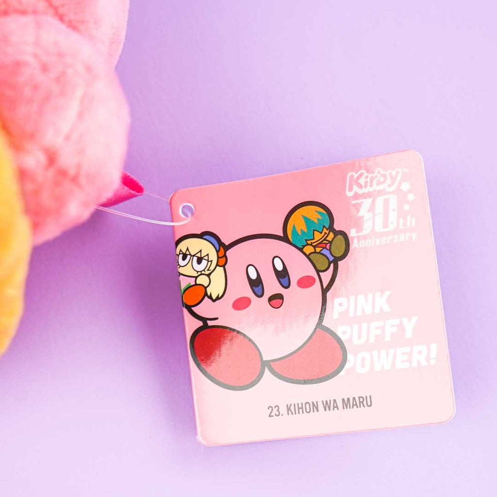 Have fun snuggling this kawaii Kirby plushie that’s designed after “Kihon wa Maru” which is the original Japanese ending theme song for the animated series, “Kirby: Right Back at Ya!” This medium-sized cutie is made of fluffy polyester and was launched in celebration of Kirby’s thirtieth anniversary.