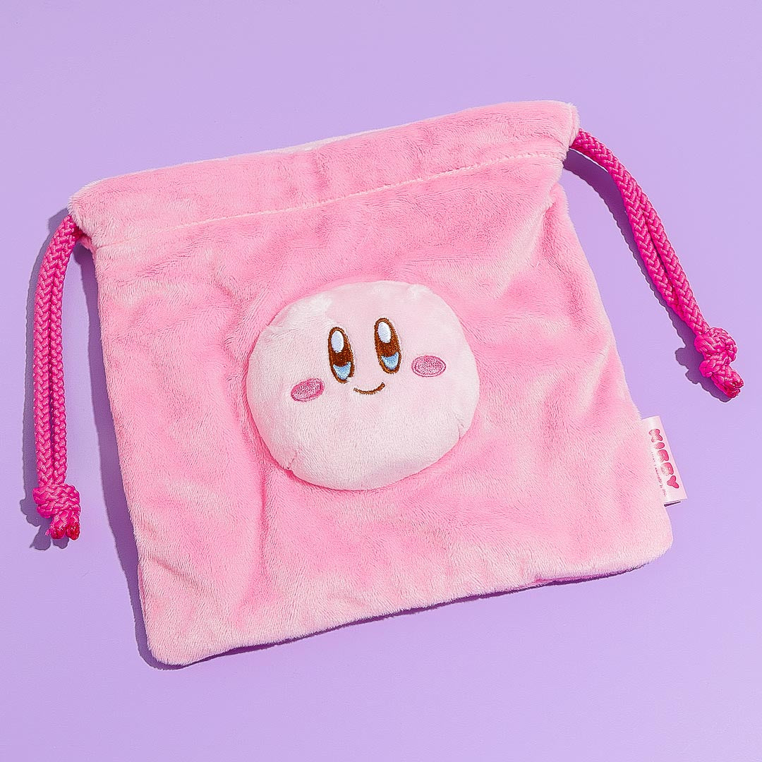 This fluffy pouch is perfect for keeping your small items! It features a 3D Kirby design and drawstring closure.