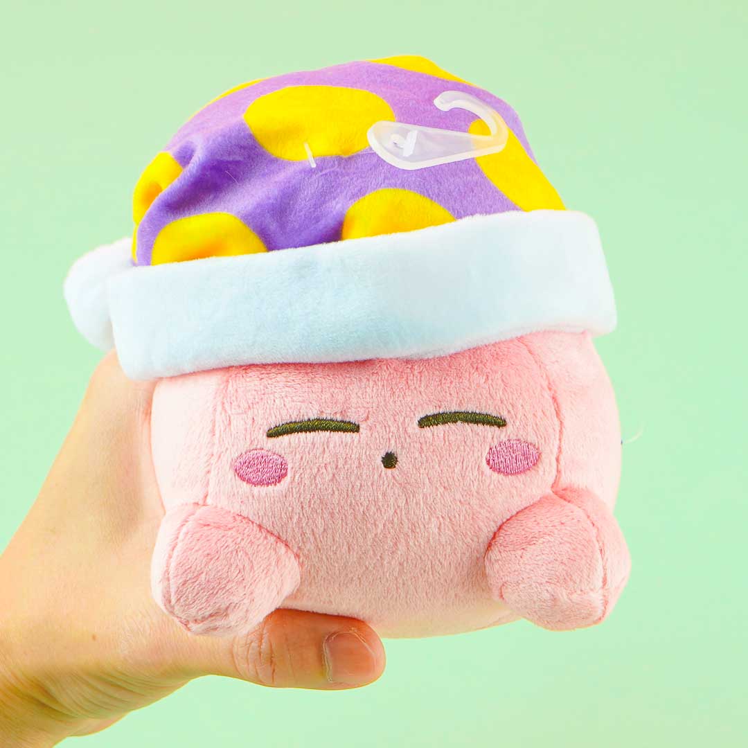 Sleep soundly as you snuggle with this medium-sized Kirby plushie! This game character version features Kirby wearing a sleeping hat as he dozes off.