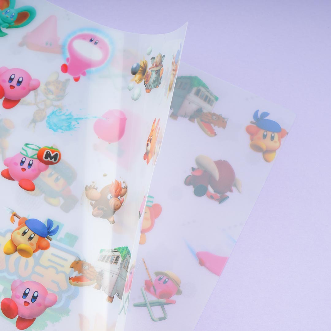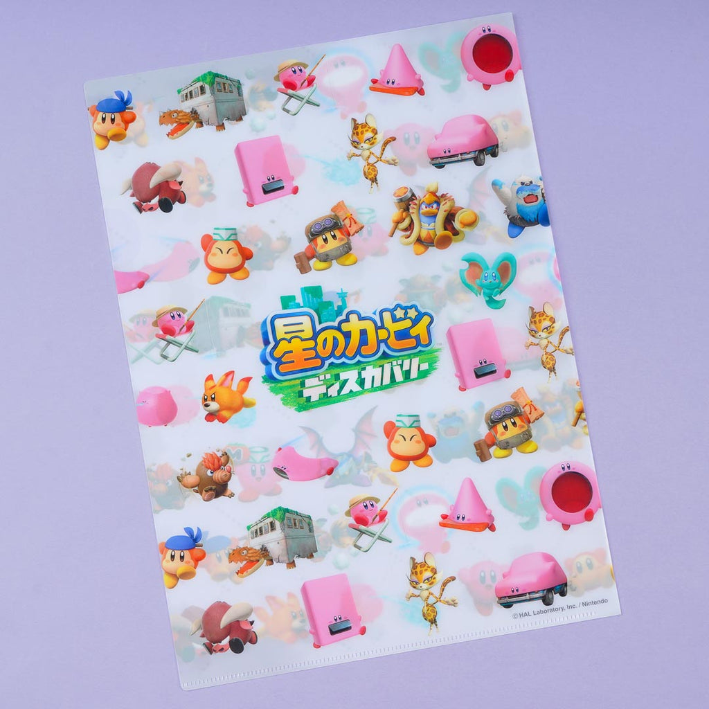 Keep your documents safe in this kawaii semi-transparent folder! It's decorated with cute character icons from the game Kirby and the Forgotten Land. This A4 folder is the perfect addition to your stationery kit.