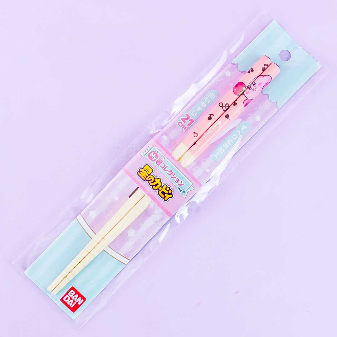 • A super kawaii pair of reusable chopsticks illustrated with Kirby and apples